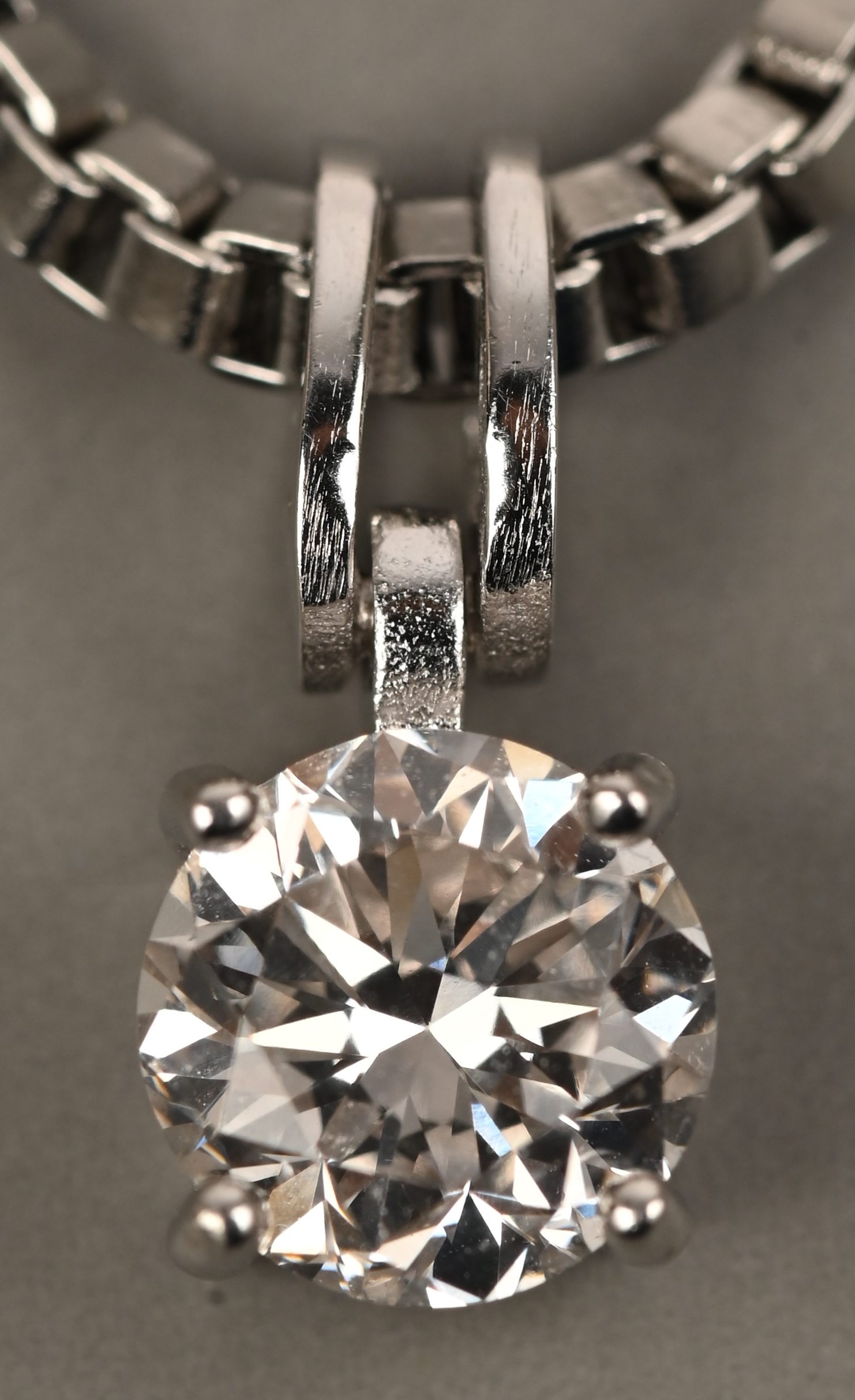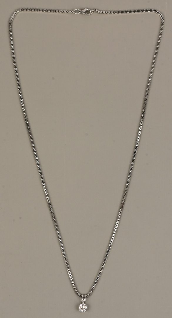 A necklace and pendant of precious metal set with a lab-created diamond of approximately 1.15 ct. VVS 2.