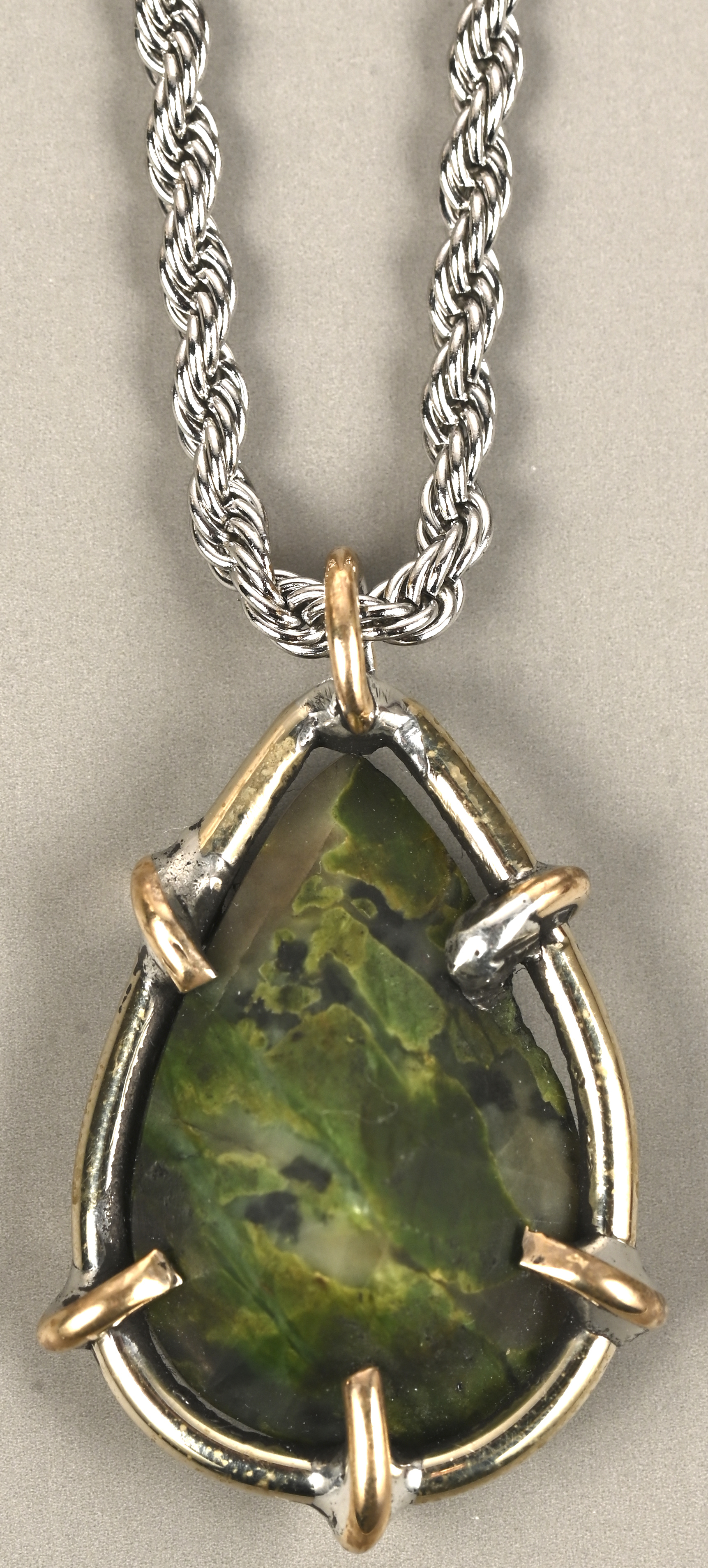A necklace and pendant made of precious metal set with a rough emerald mother stone of approximately 9.40 ct.