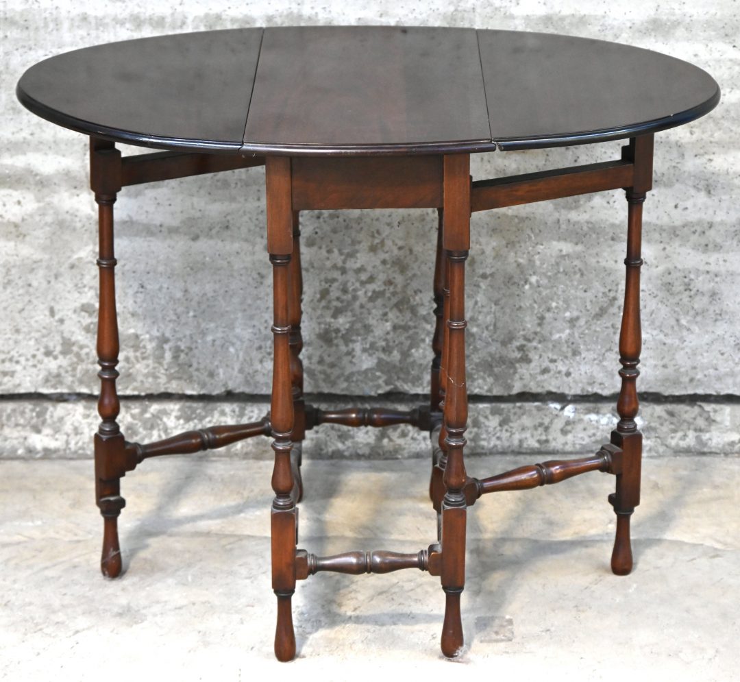 Een kleine gatelegtafel van notenhout. Engelse stijl.