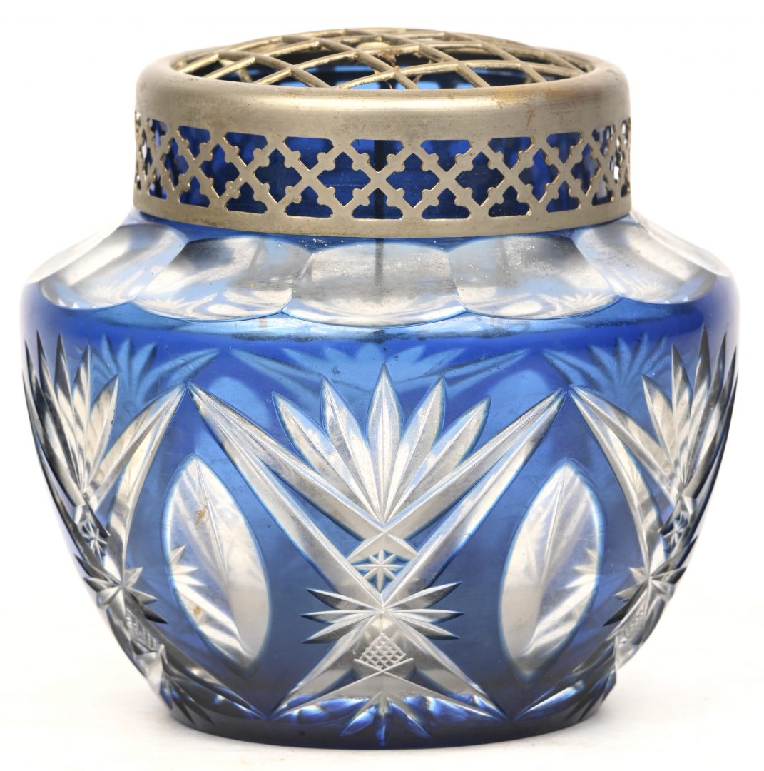 #513Val Saint LambertEen kristallen pique-fleurs, blauw in de massa gekleurd.
