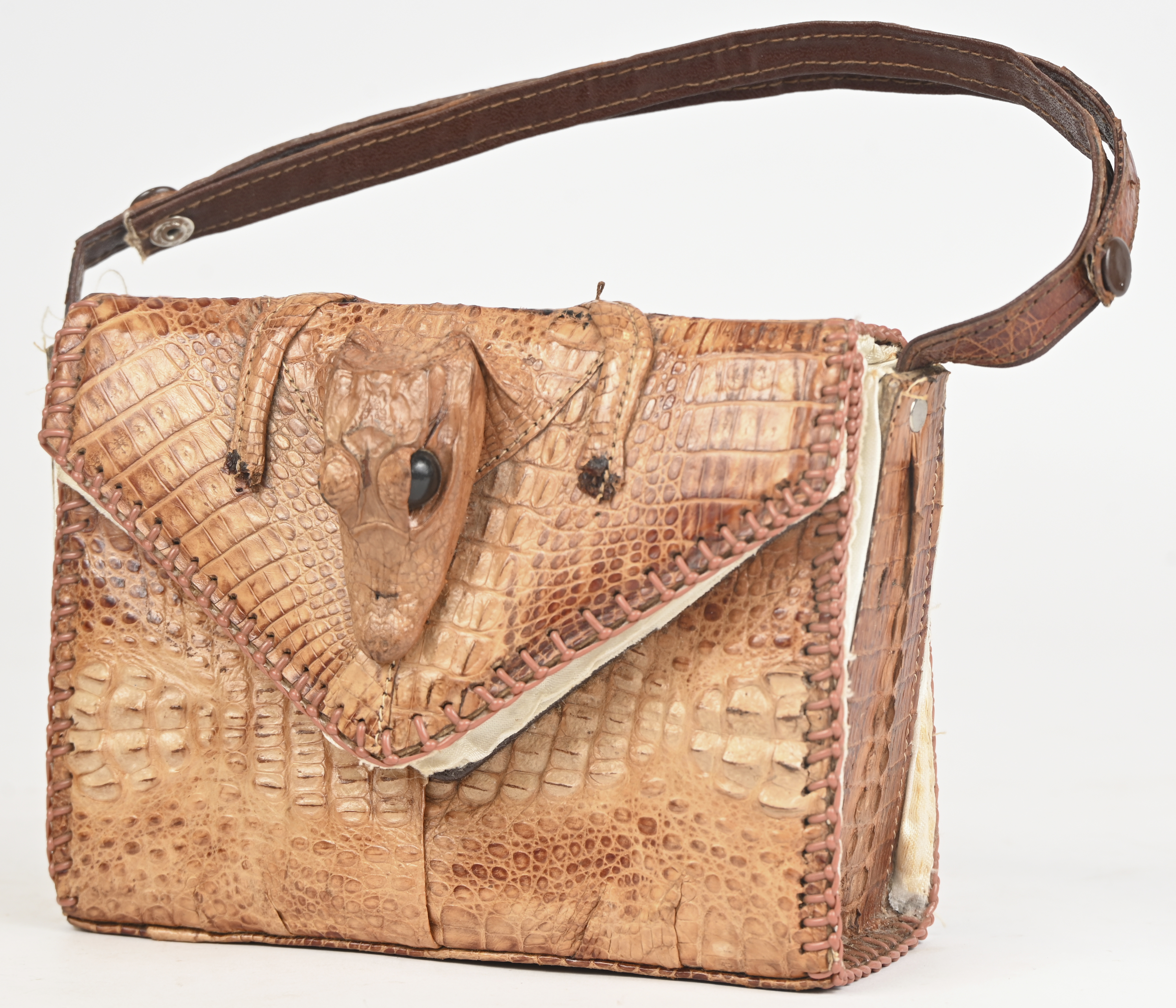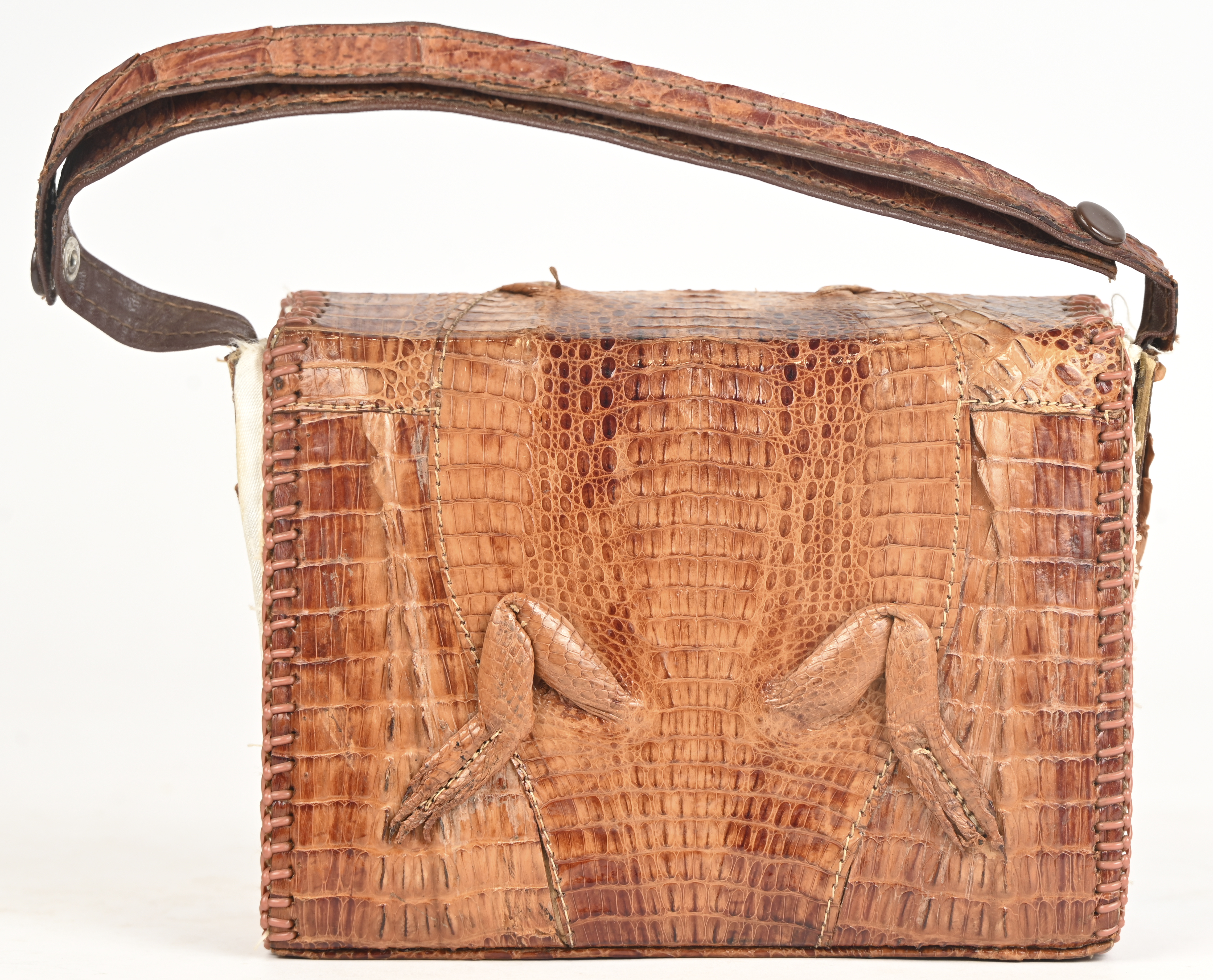 Een kleine vintage aligatorhandtas.