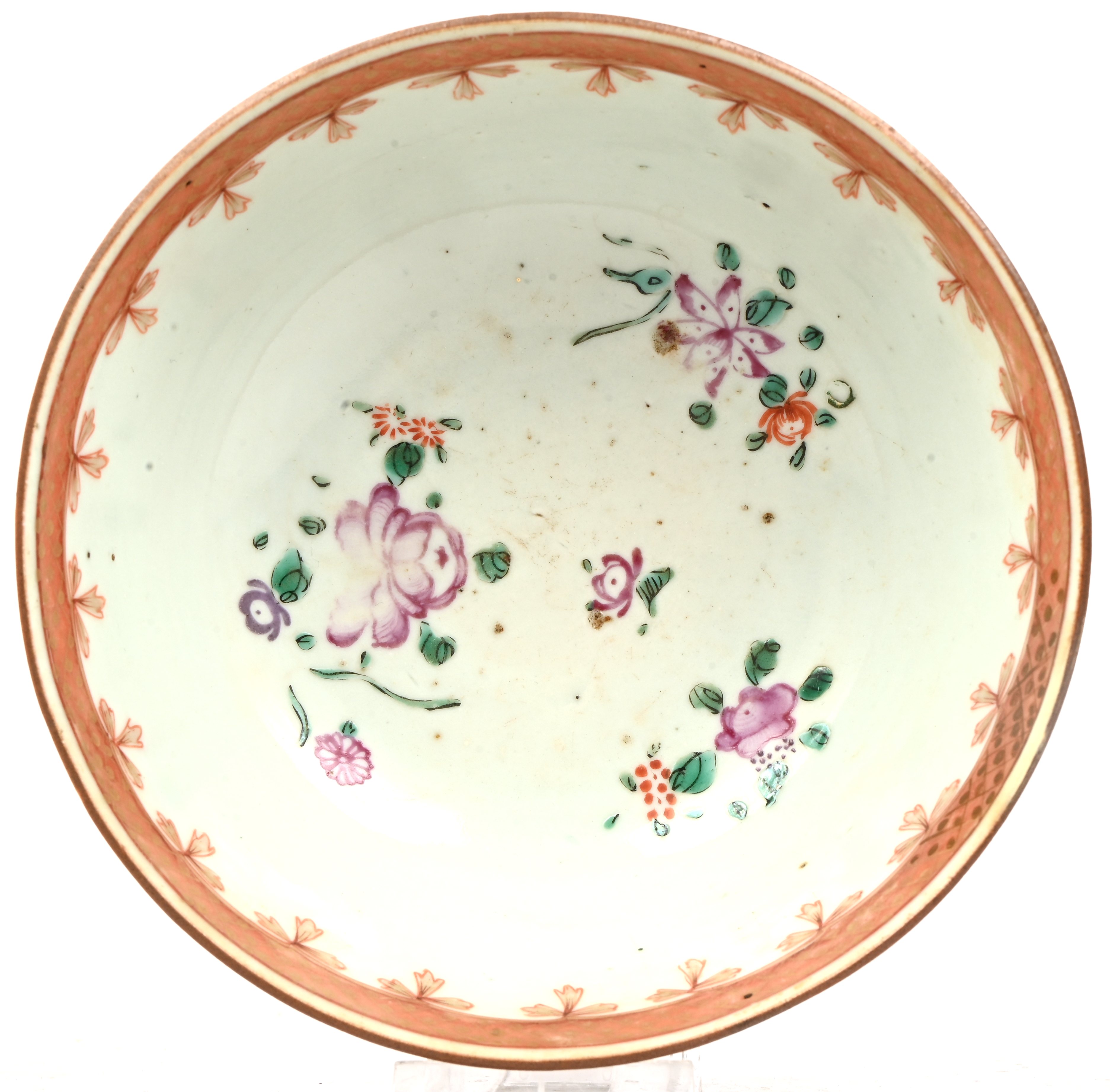 Een lot van twee schalen en een grote kom van meerkleurig geglazuurd aardewerk. Frans en Portugees, vermoedelijk 18e eeuw.