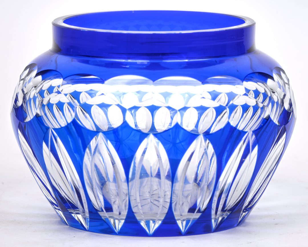 #557Een vaas van blauw en kleurloos VSL kristal. Getekend Val St. Lambert.