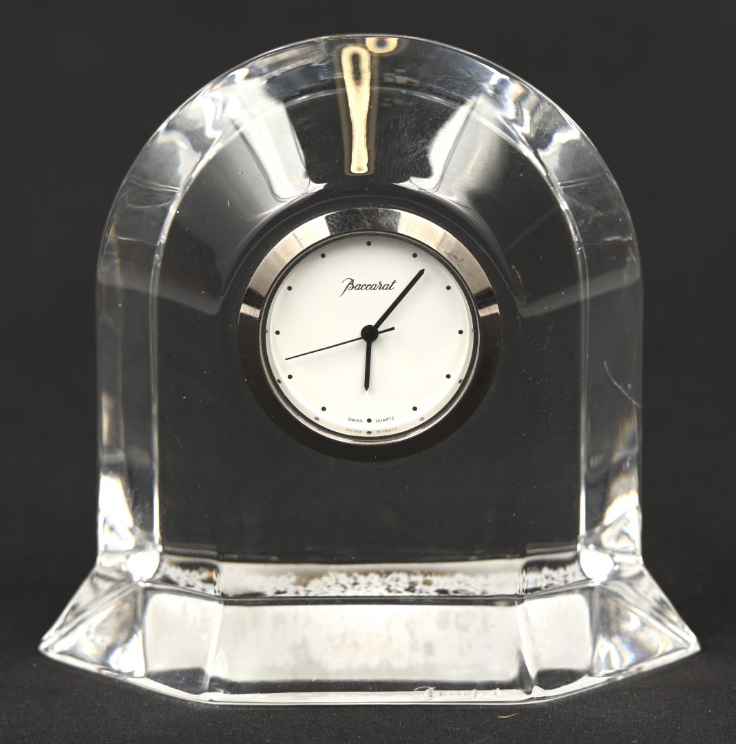 Een tafellamp met kristallen voet, groen in de massa gekleurd, gemerkt.