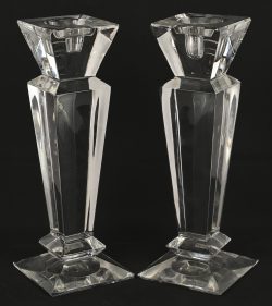 A pair of crystal candlesticks in art deco style. Unmarked. -