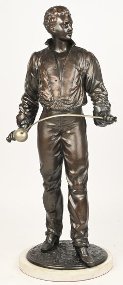 #53“De schermer’, een zamakken beeld, gesigneerd Ch. Massé.