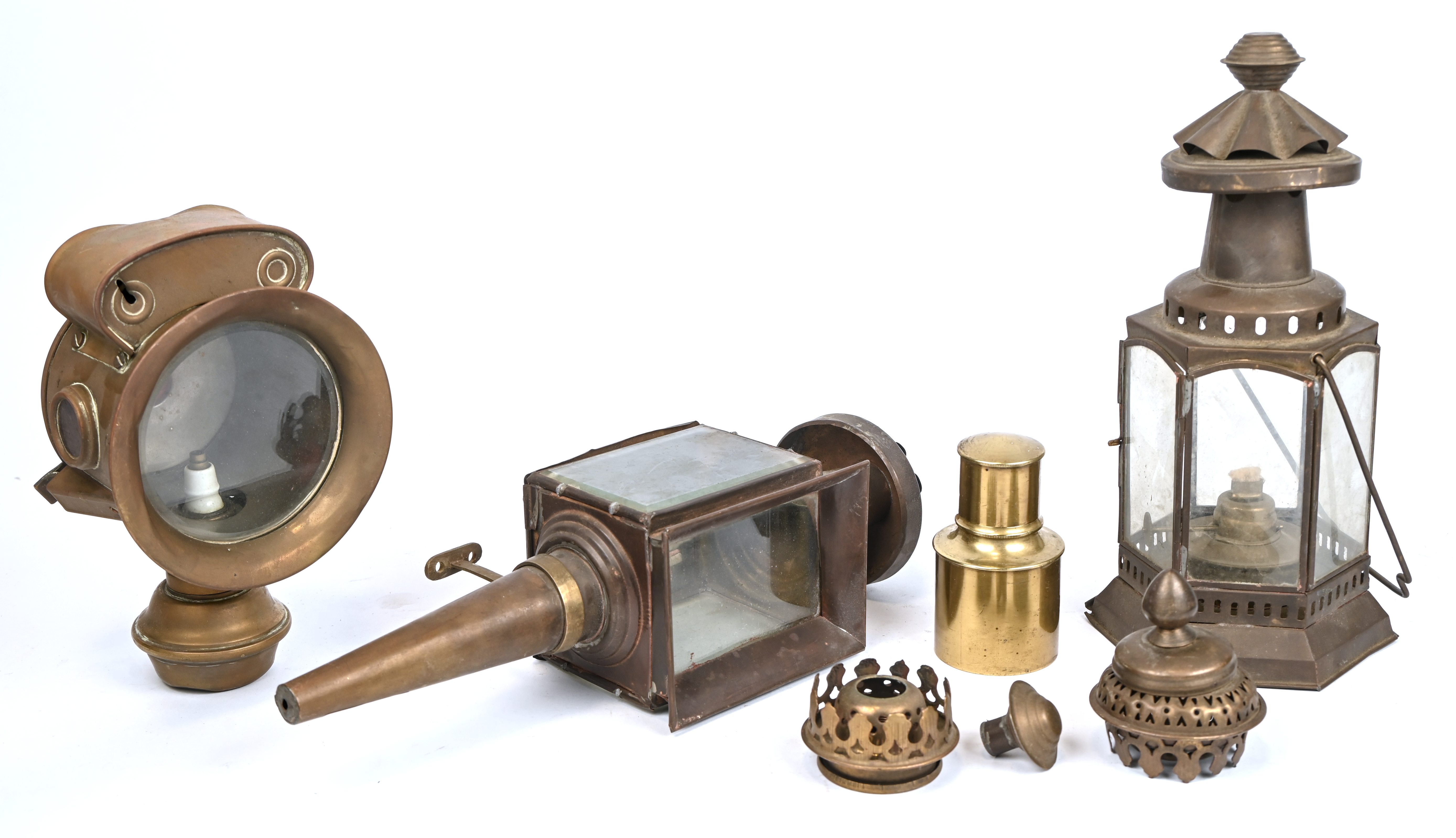 Een lot koper waaronder verlichting en losse onderdelen.