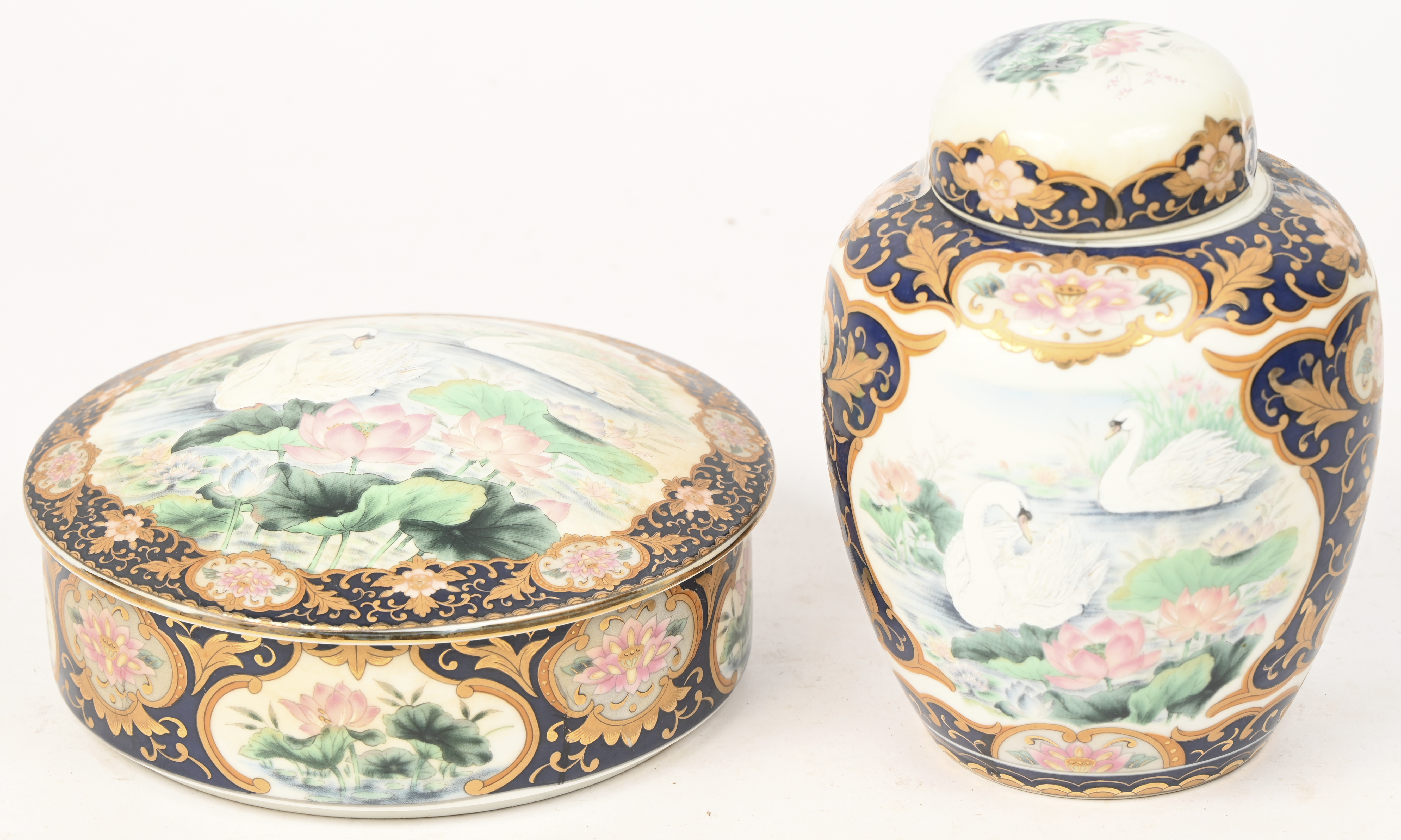 #192Een set van 2 Imari porseleinen dekselvazen.