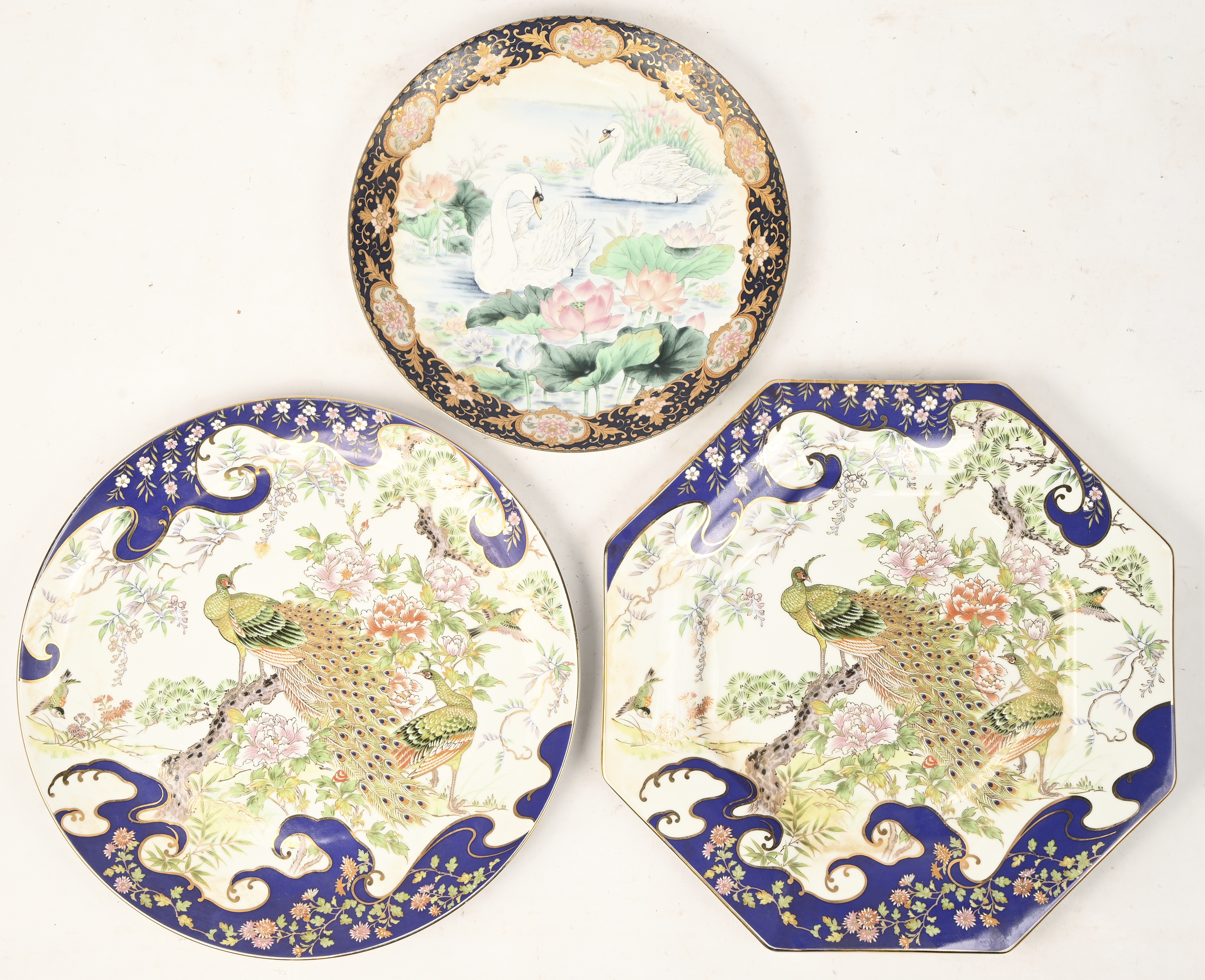 A lot of 3 old French faience plates, decorated with a bird and flowers. -
