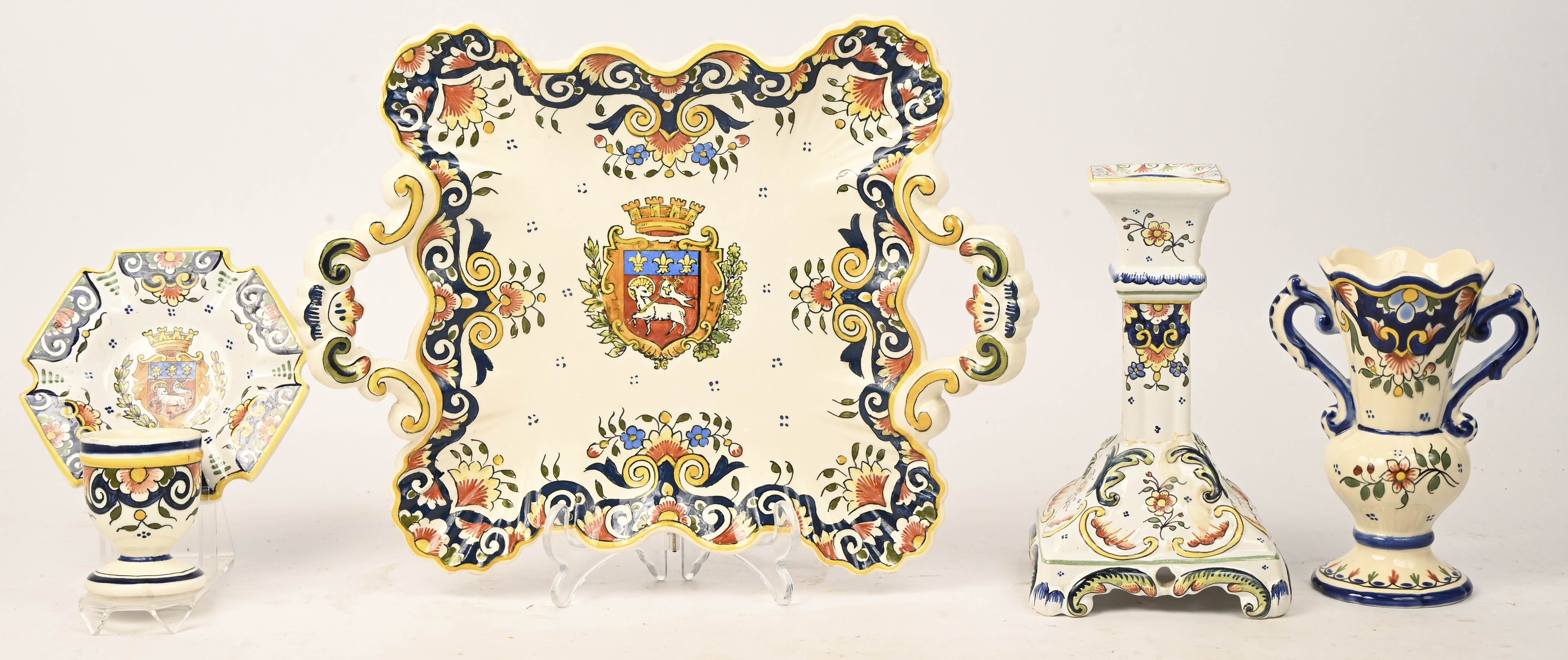 #219Een lot van 3 oude Franse borden in faiènce, een vogel en bloemen in het decor.
