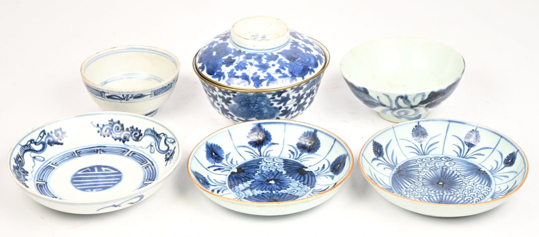 A six-piece dessert service of blue and white porcelain. With Asian decoration.No longer availableOnline onlyActive bid: 10.00 €Estimate: € 40 / 60 -
