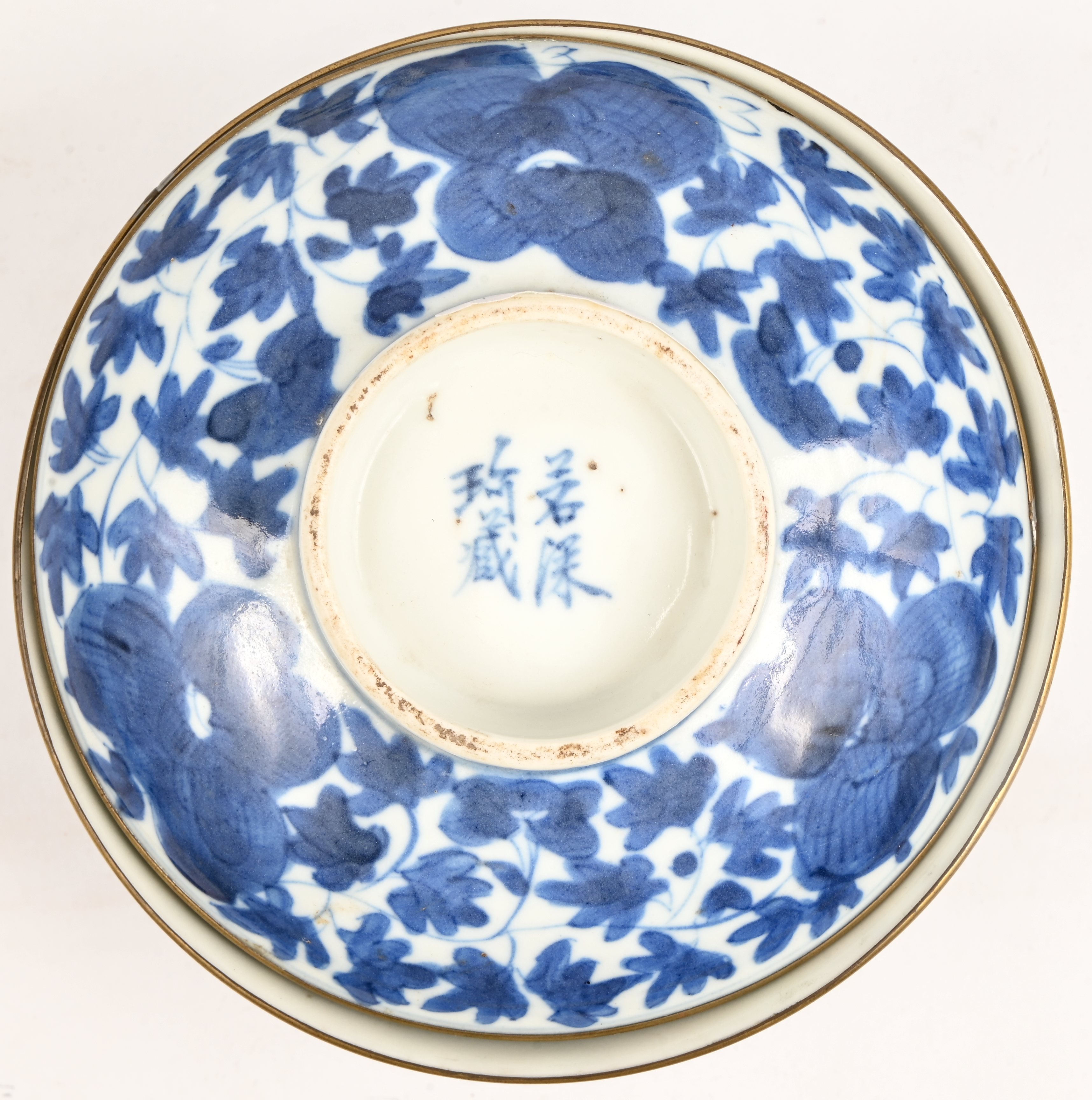 #120Een theepot en een kom met deksel van blauw-wit geglazuurd Chinees porselein. Niet gemerkt.