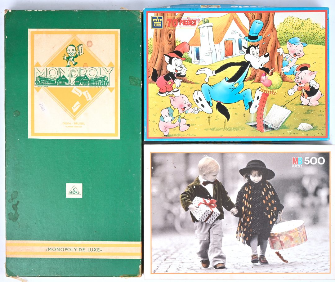Een lot speelgoed bestaande uit een oude monopoly en 2 puzzels.
