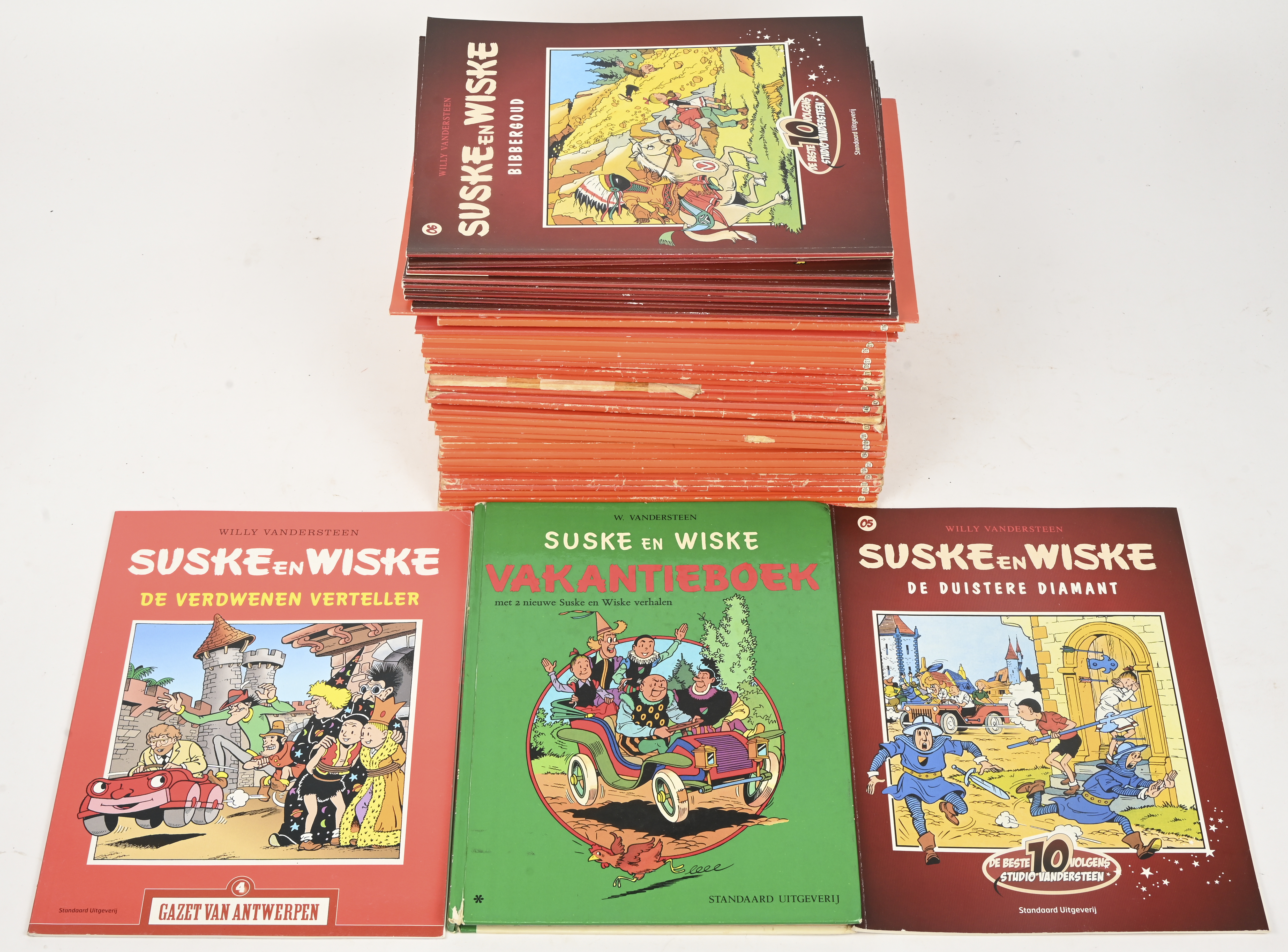 A lot of approximately 100 comics in well-read condition. Suske & Wiske, The Bluecoats, Tintin, Nero, and many others. -