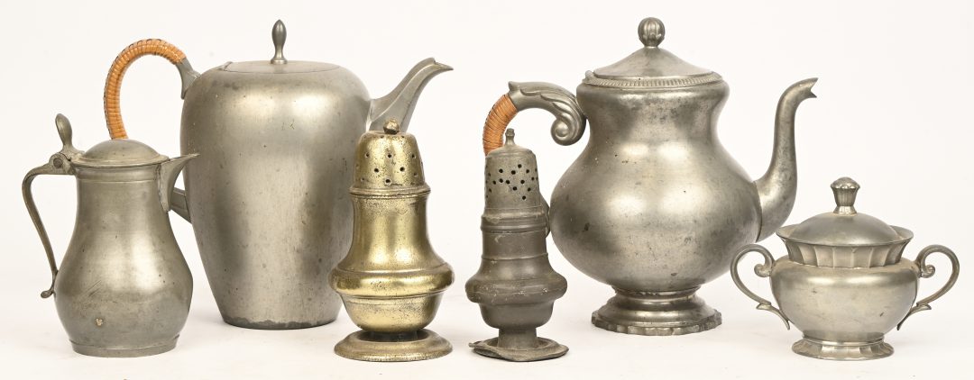 A coffee and tea set consisting of a coffee pot, teapot, sugar bowl, and creamer on a tray. Marked SIGG, Switzerland, at the bottom. Accompanied by a set of 6 Duralex France tea glasses on a silver-plated tray.No longer availableOnline onlyActive bid: 35.00 €Estimate: € 100 / 150 -