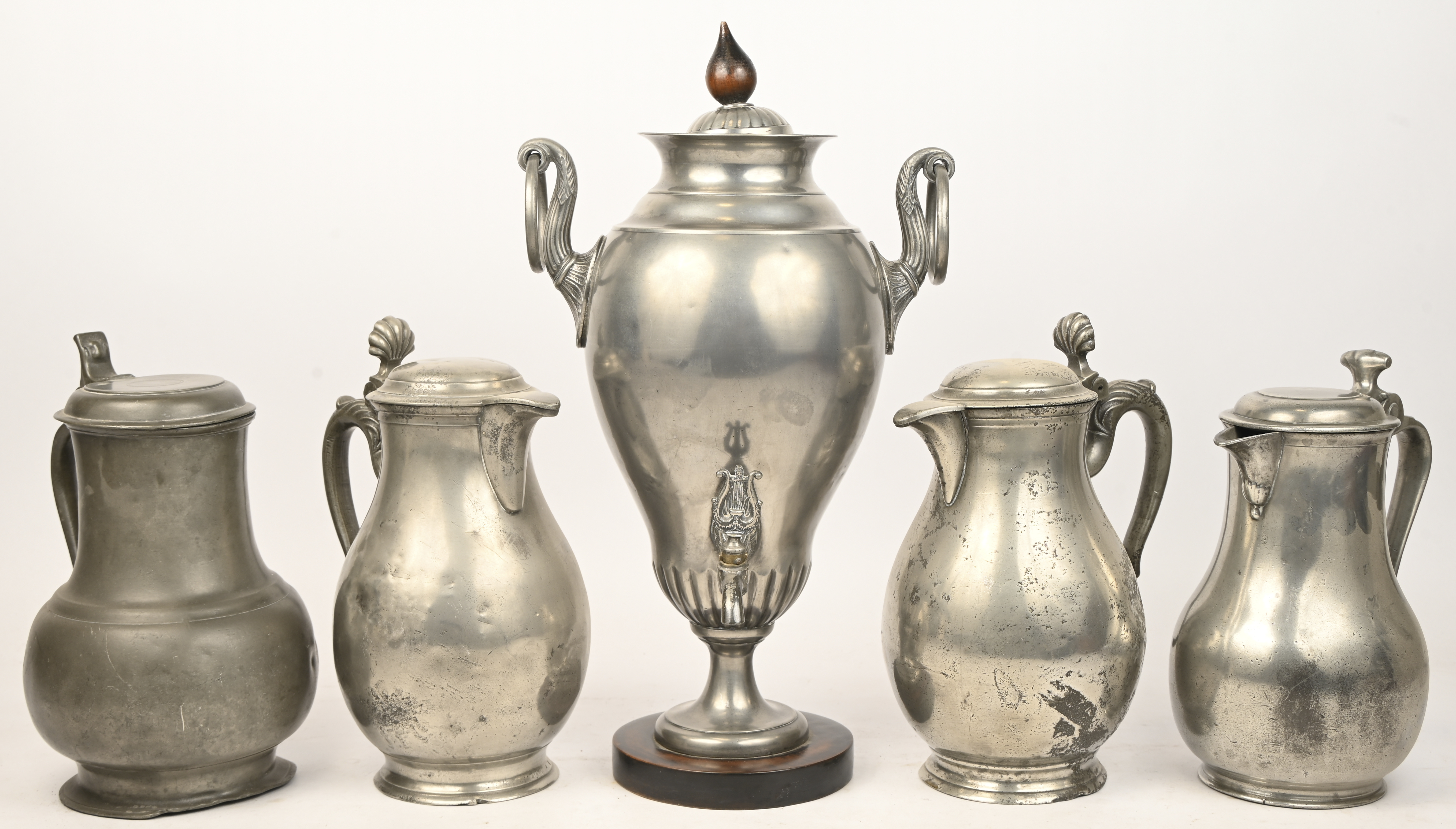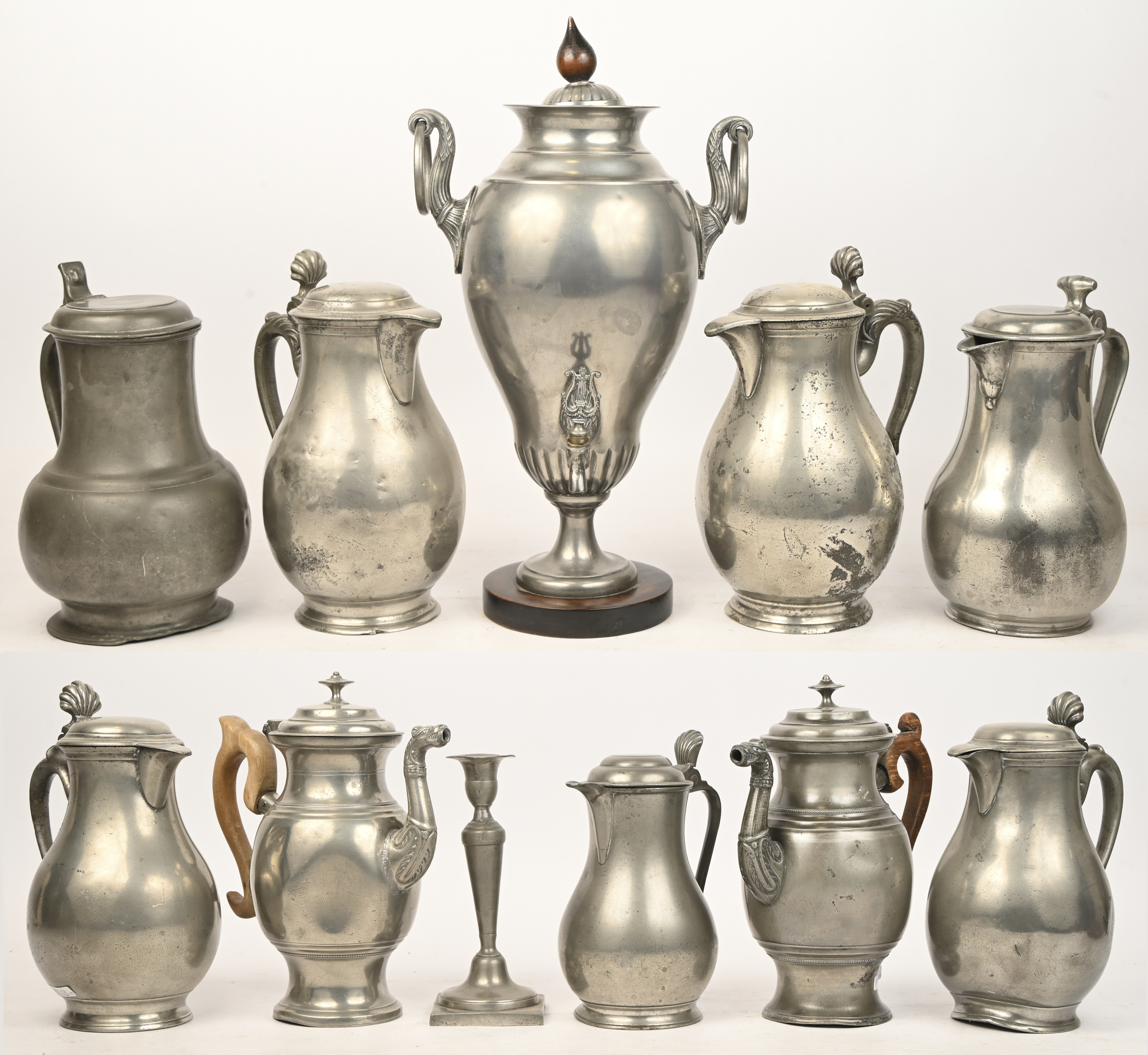 #231Een lot van 14 kg oude tinnen borden, schalen en een terrine.