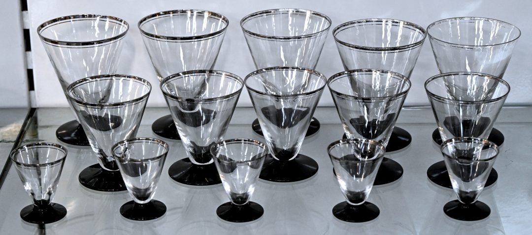 #108Een set van 3 gekleurde glazen in Boheems kristal.