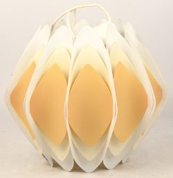 #130Een modernistische tafellamp, 3 verstelbare armen en groen gevlekte glazen kapjes.