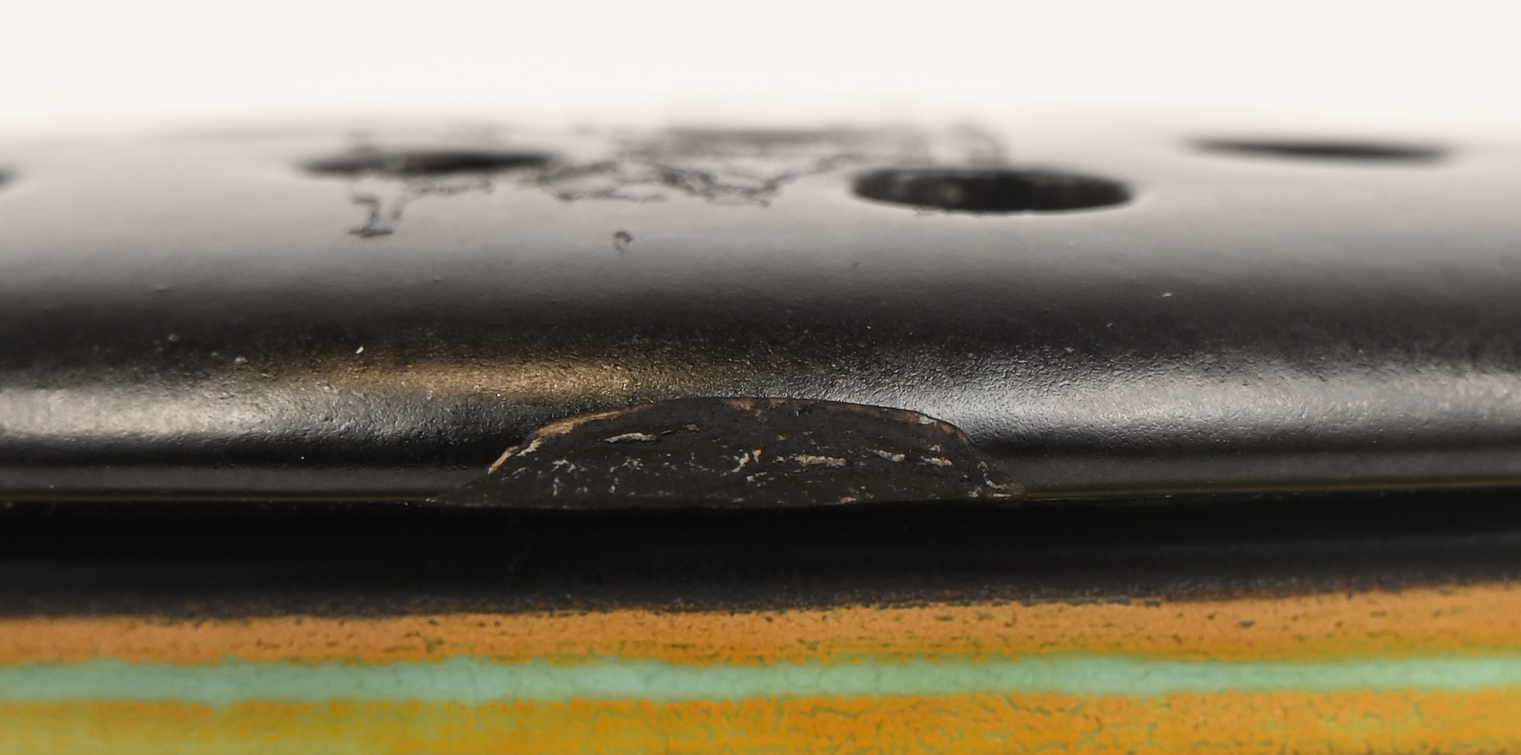 Een lot van 2 meerkleurig Gouda aardewerk bestaande uit een vaas gemerkt Princess met monogram van de maker en een pique-fleur met haarlijn en schilfer gemerkt Schoonhoven.