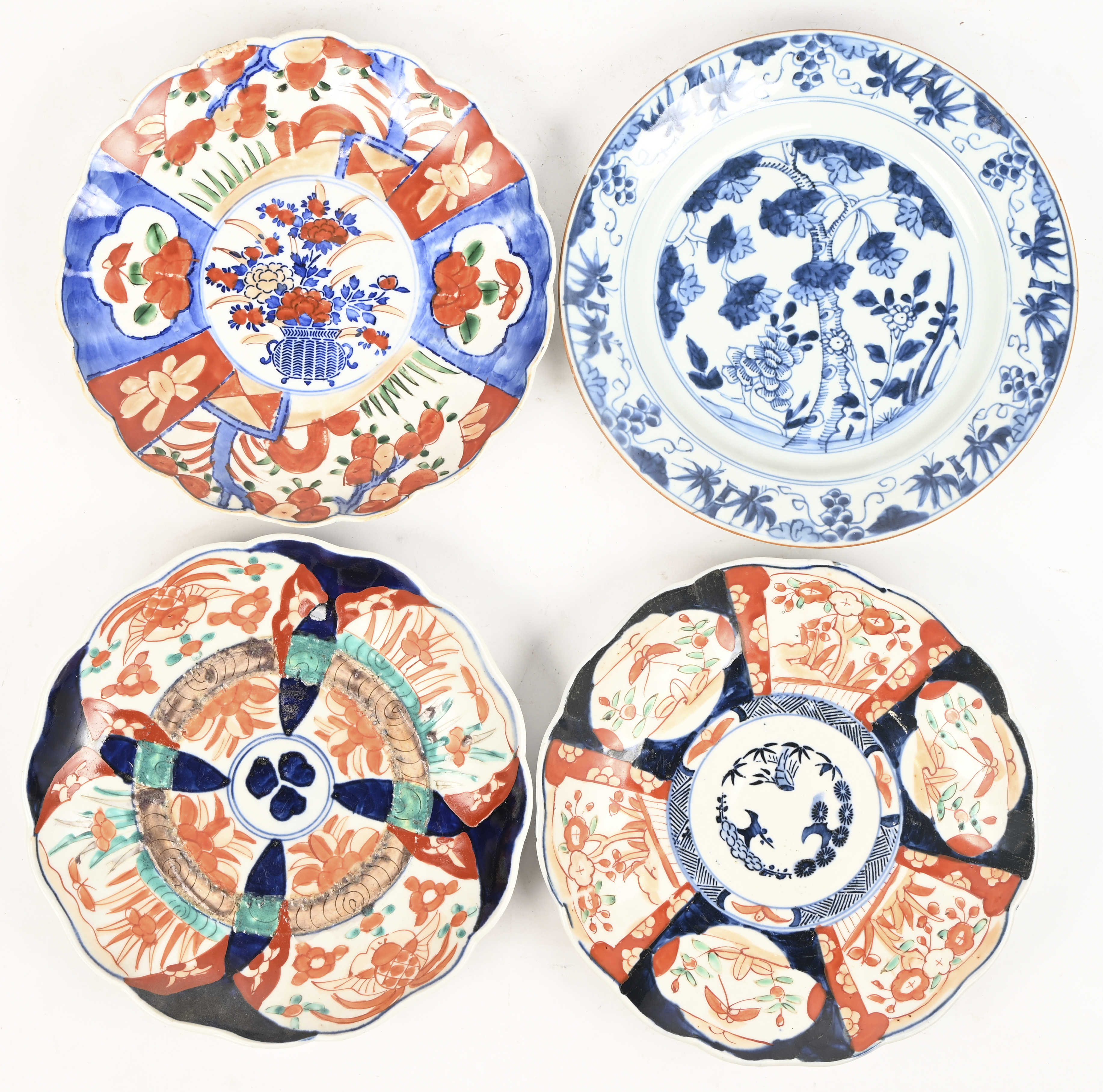Een Chinees porseleinen diepe schotel, toegevoegd 2 kleine bordjes.