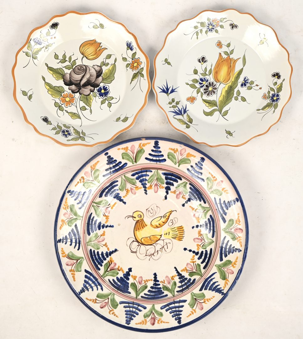 A varied lot of pottery consisting of four plates marked BFK, two openwork plates with images of children, and two brush vases of blue and white Delftware.No longer availableOnline onlyDim. Hoogte 31, Ø 22 cmEstimate: € 30 / 50 -