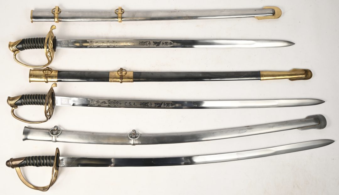 A lot of 3 replica officer sabers, dating to the 19th century. -
