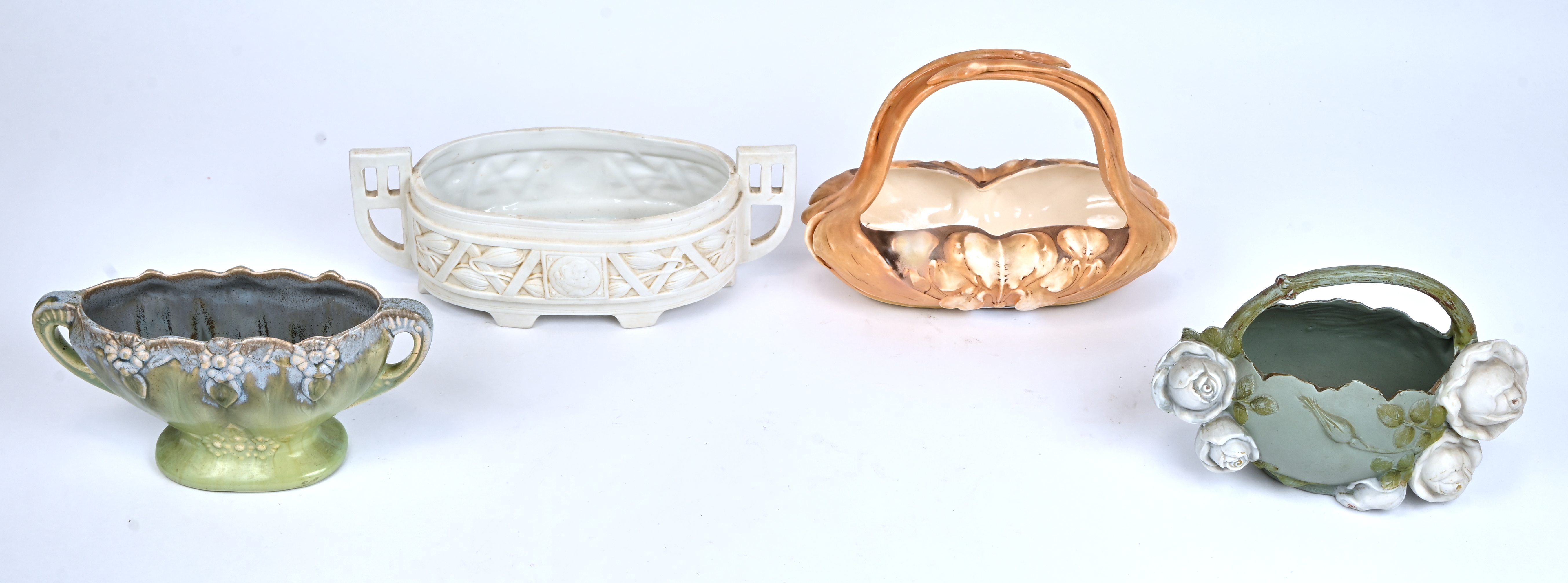 Een lot van 4 art-nouveau schaaltjes, biscuit en meerkleurig aardewerk, van diverse origine: Oostenrijk, België, ..