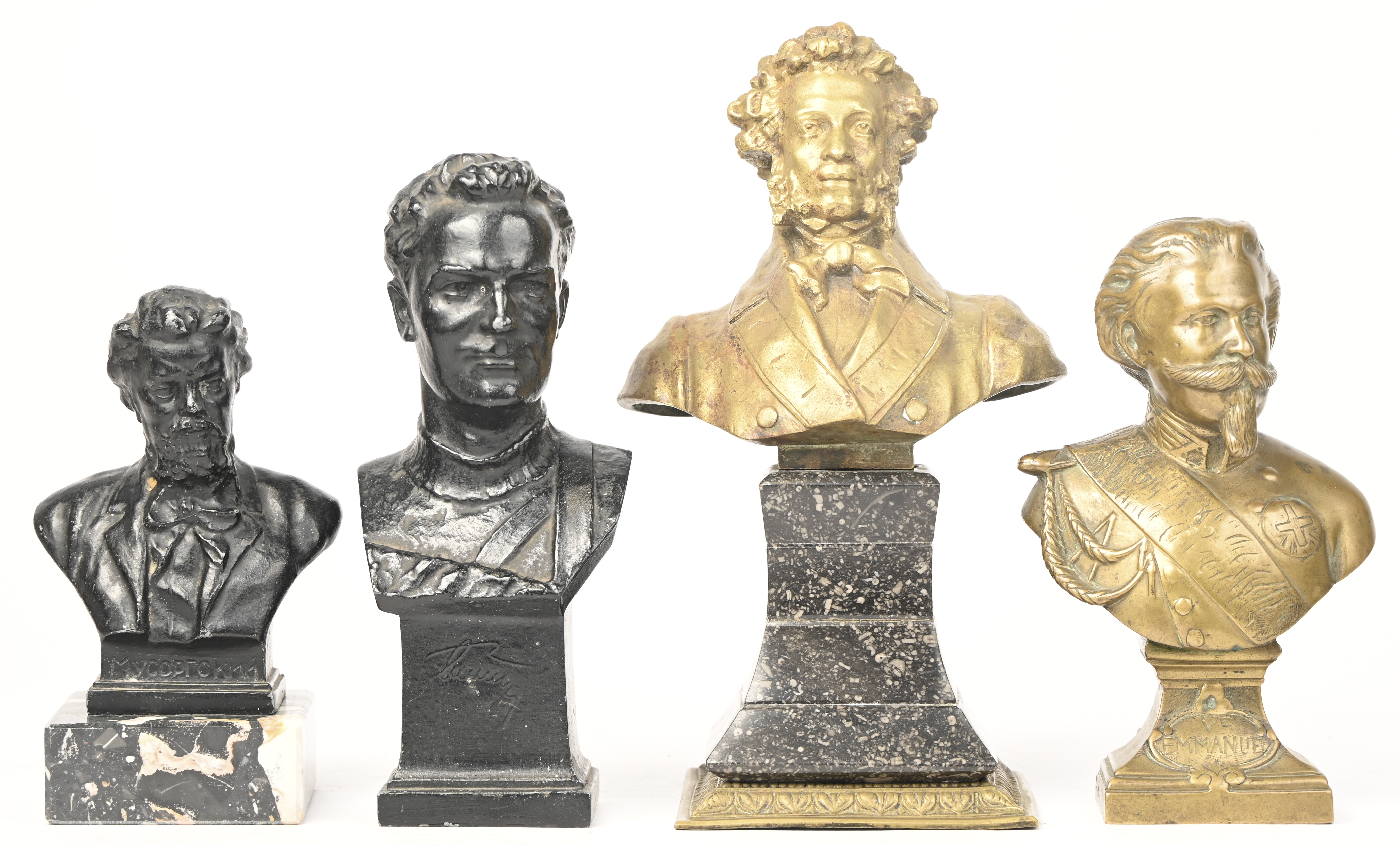 Een lot van 4 bustes van belangrijke personen, 2 uit brons en 2 uit kunstbrons.