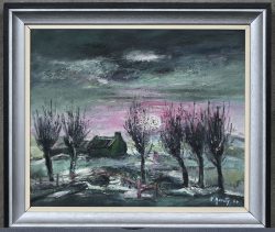 'Landscape with pollard willows,' oil on canvas. An expressionistic work in shades of green with pink, signed V. Renty '74. -