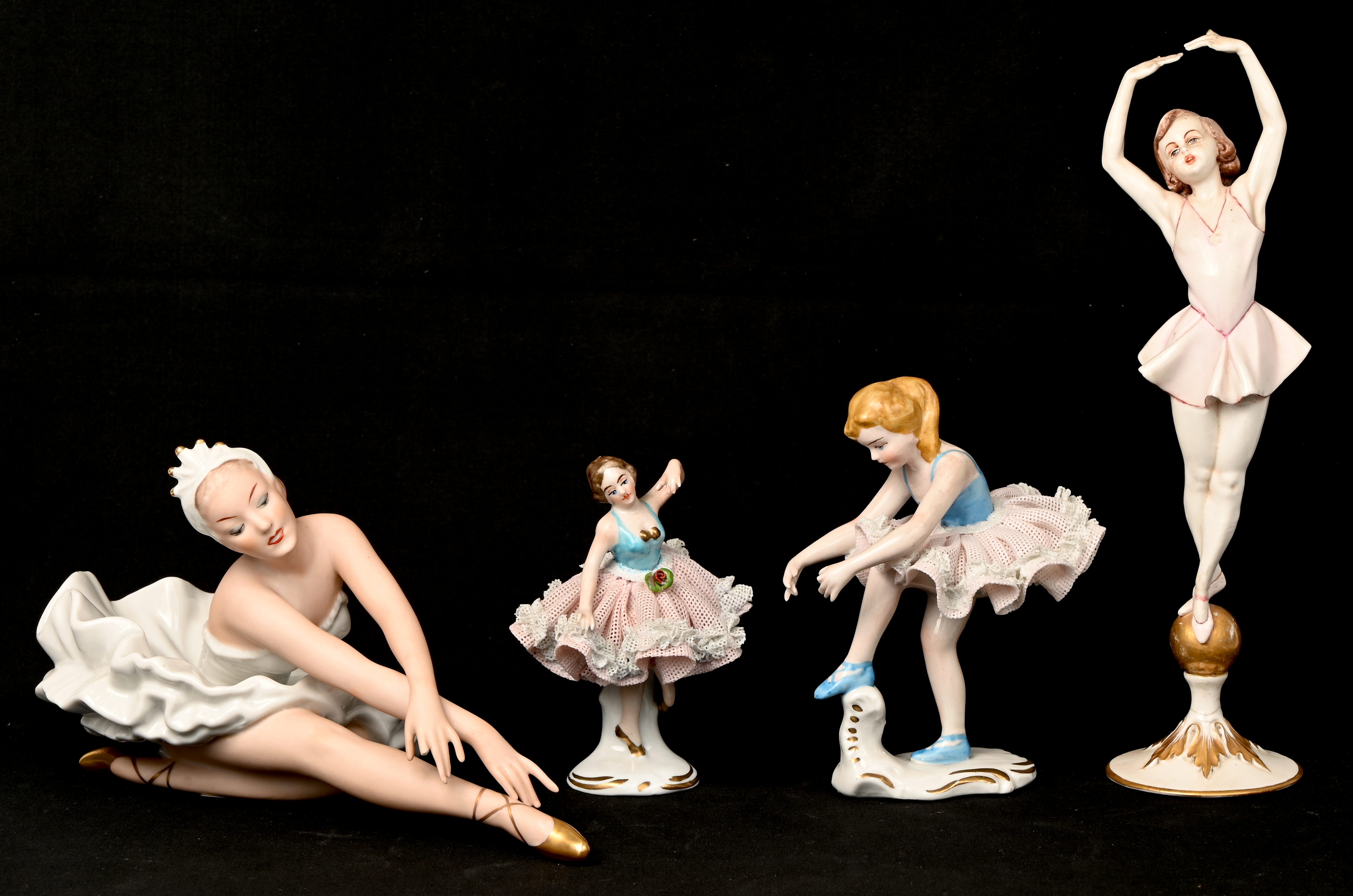 Een lot van 4 porseleinen ballerina’s, de 3 grootste missen één of meerdere vingers.