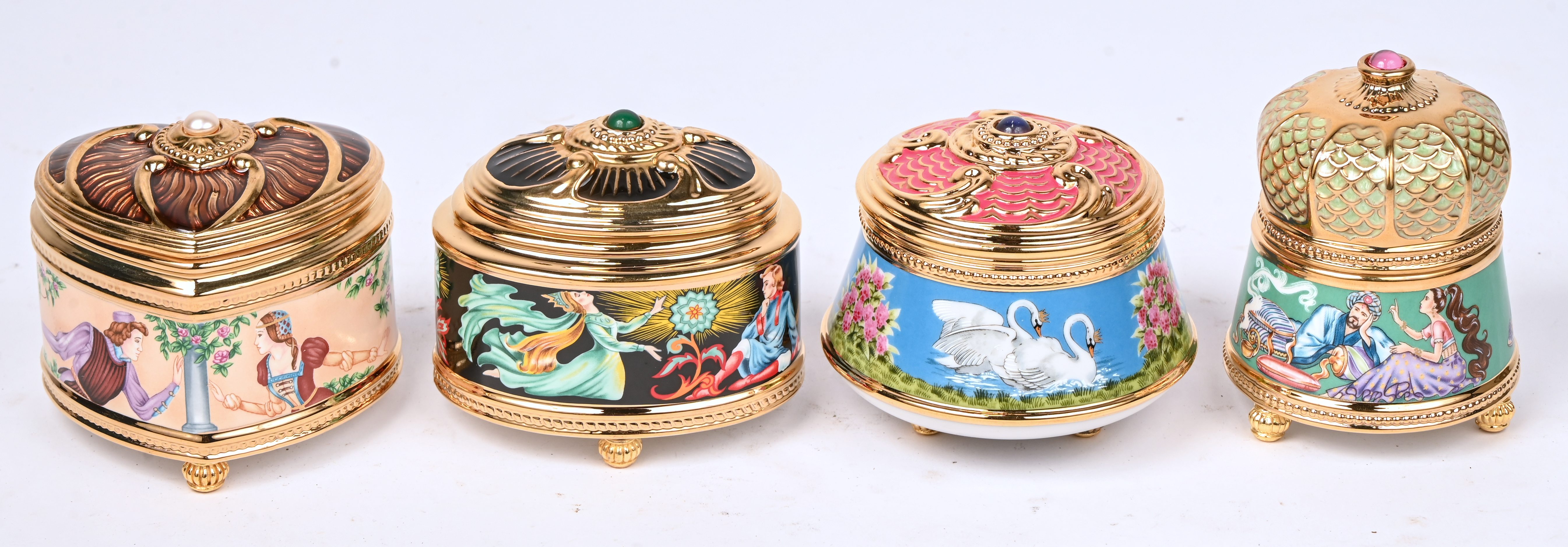 Een lot van 4 porseleinen muziekdoosjes met verschillende vormen.