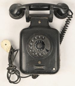 #52Een vintage bakelieten wandtelefoon, made in Germany.