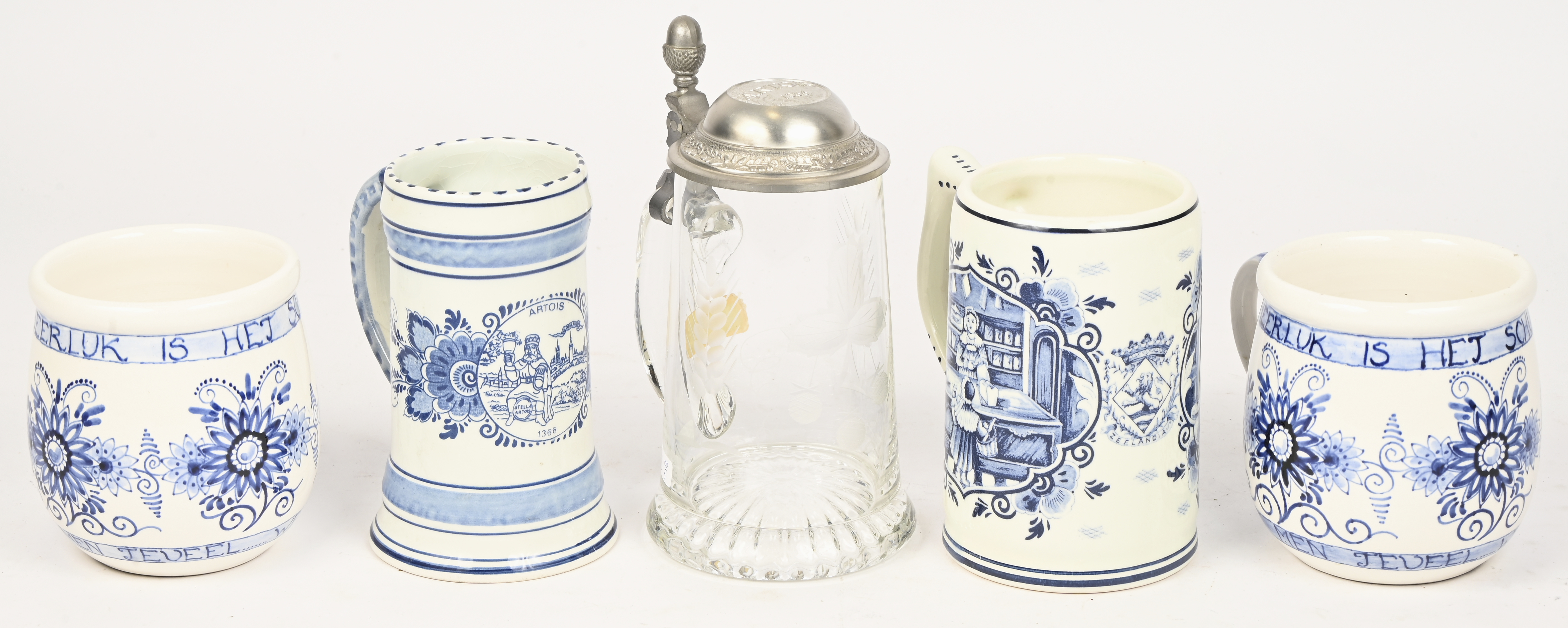 Een lot van drie vazen en drie kannen in Delfts blauw aardewerk.