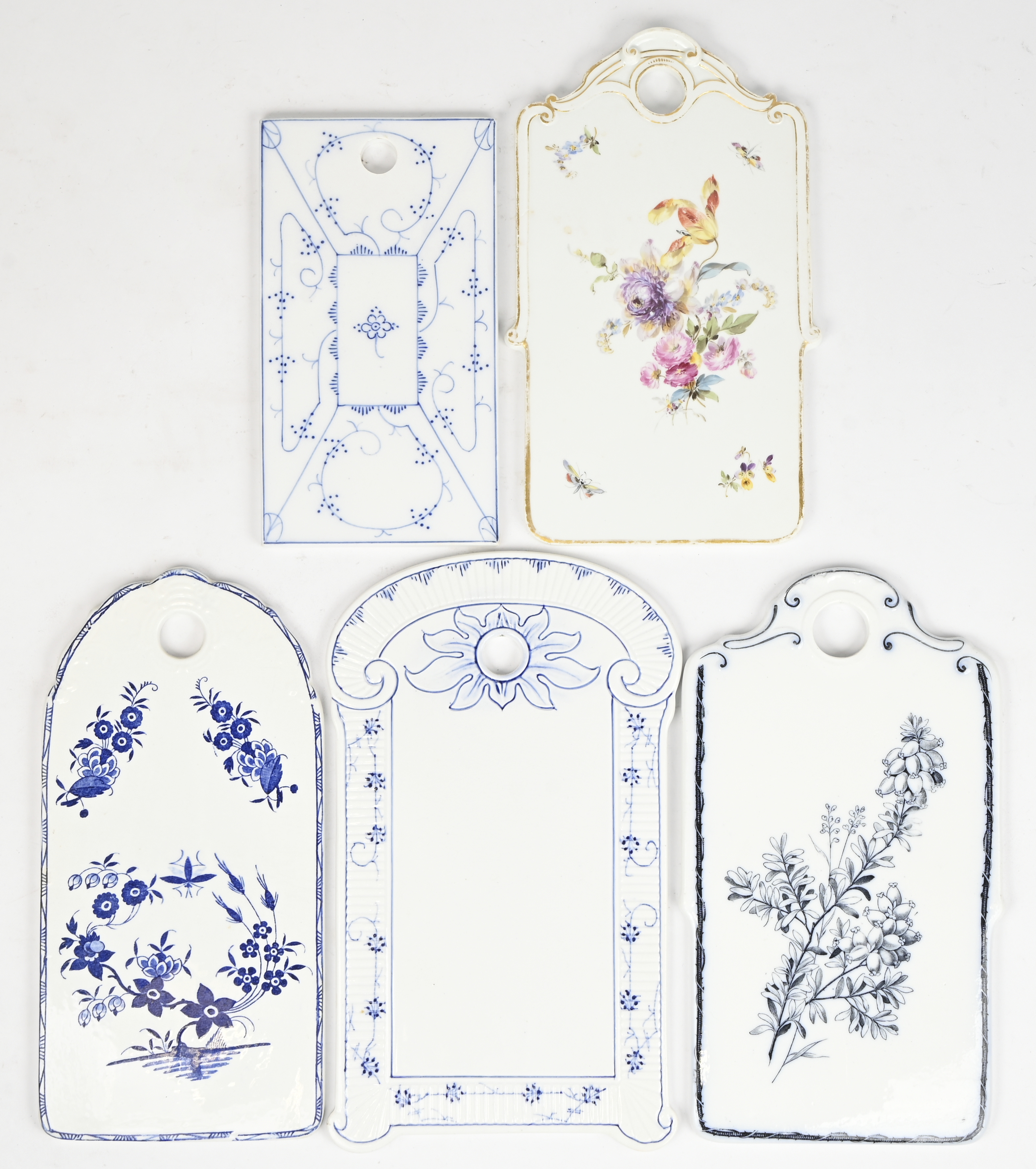 A lot of 5 porcelain bread boards, 4 marked Boch, 1 marked Meissen.
