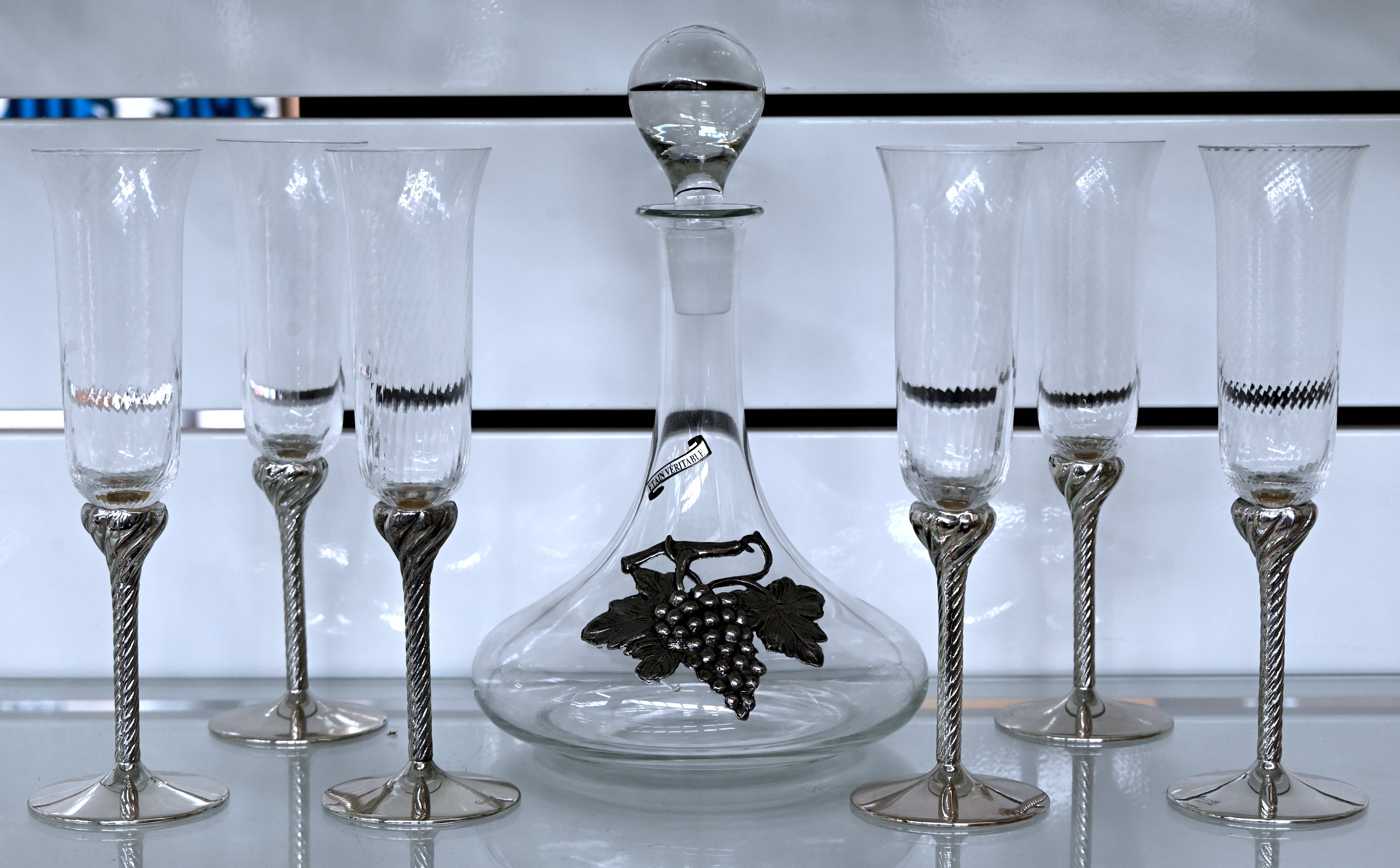 #57Christofle FranceEen set van 2 verzilverd metalen kandelaars, één arm is hersteld. Gemerkt.