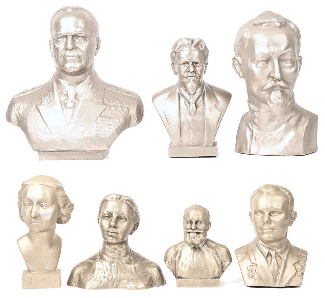 A lot of 7 aluminum busts with various subjects/origins, from Russia to America.