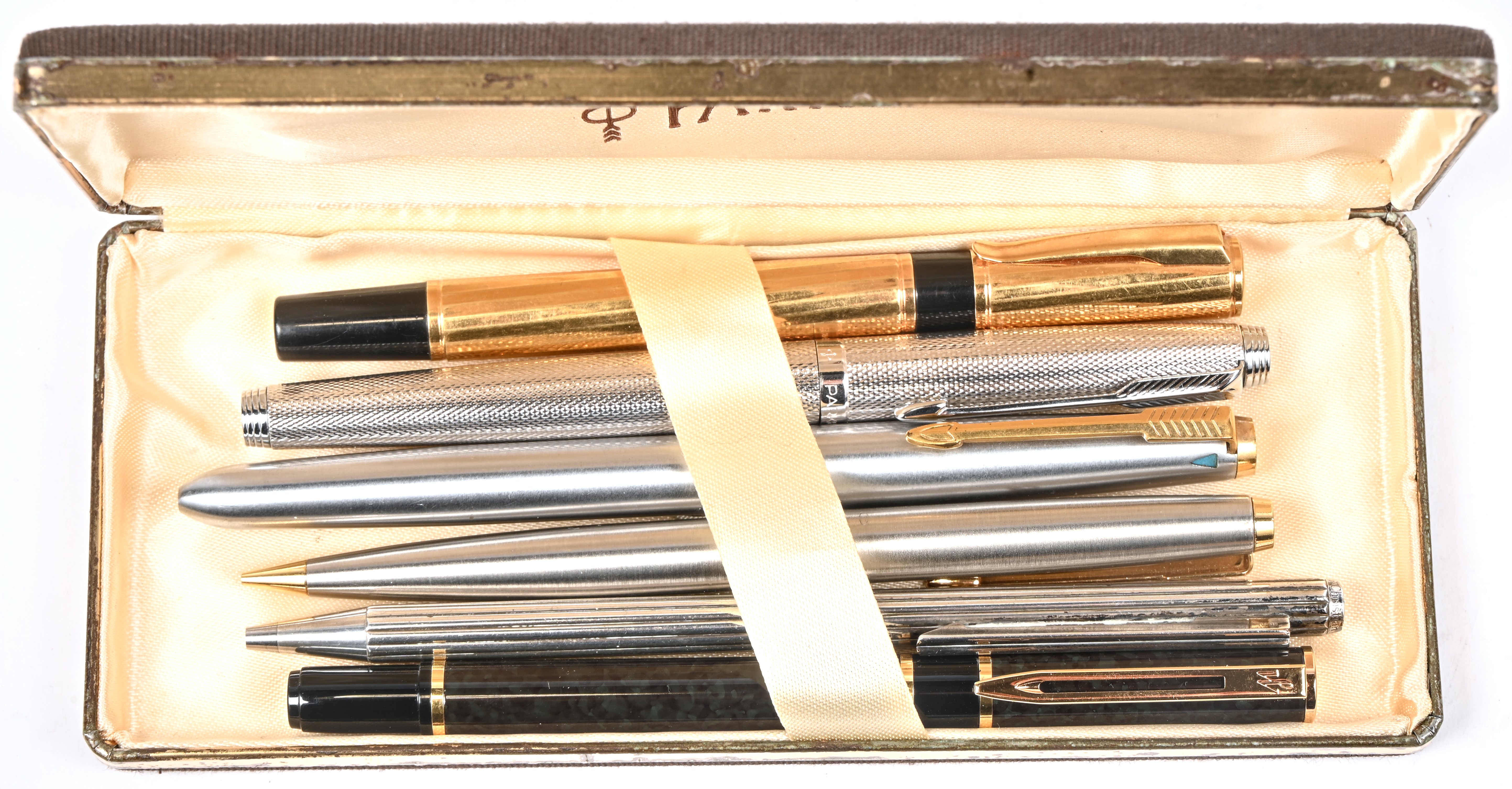 Een pen van het merk Dupont met zilveren delen en laque de Chine. In originele doos.