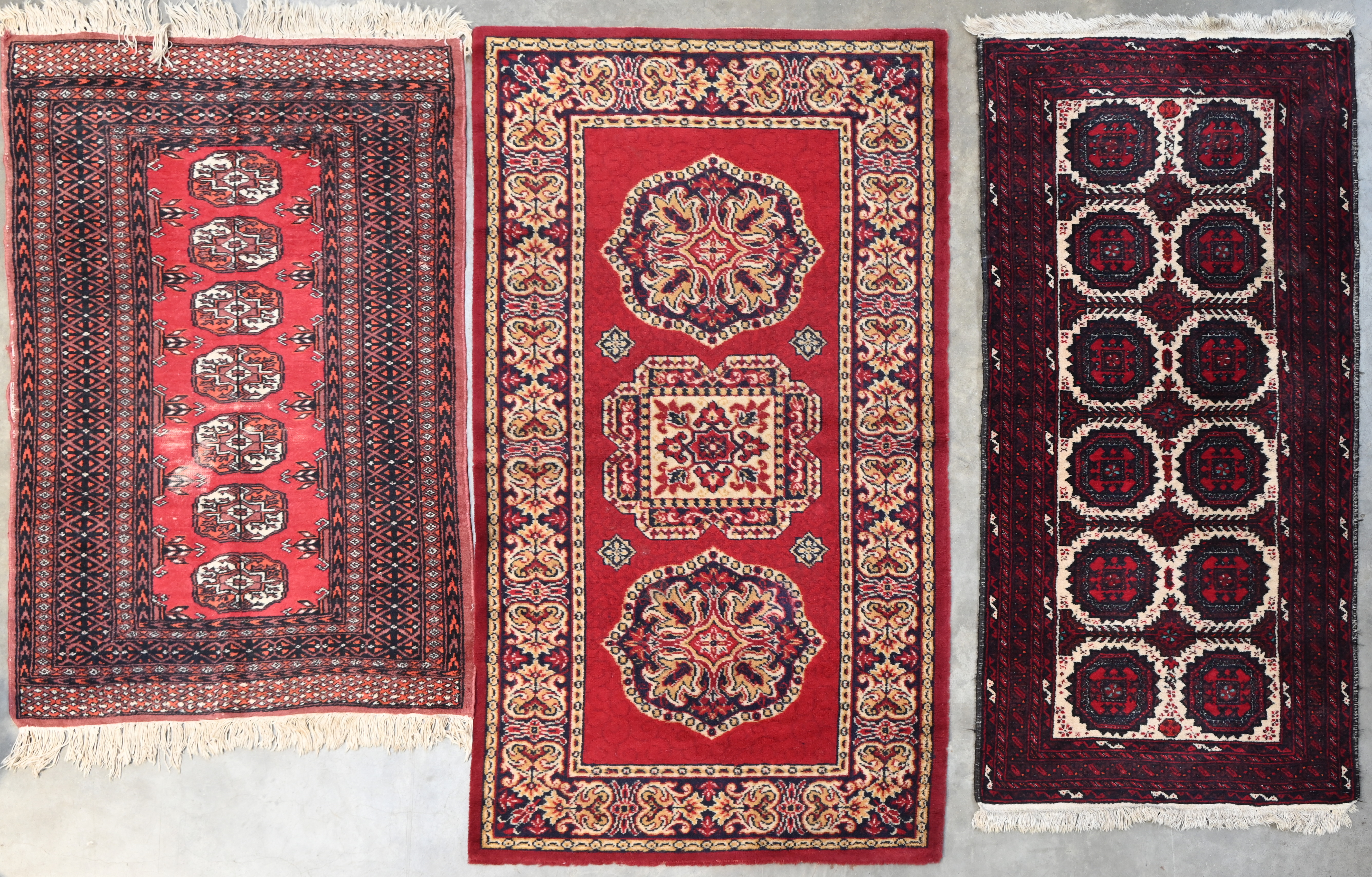 Een lot van drie handgeknoopte Oosterse tapijtjes.