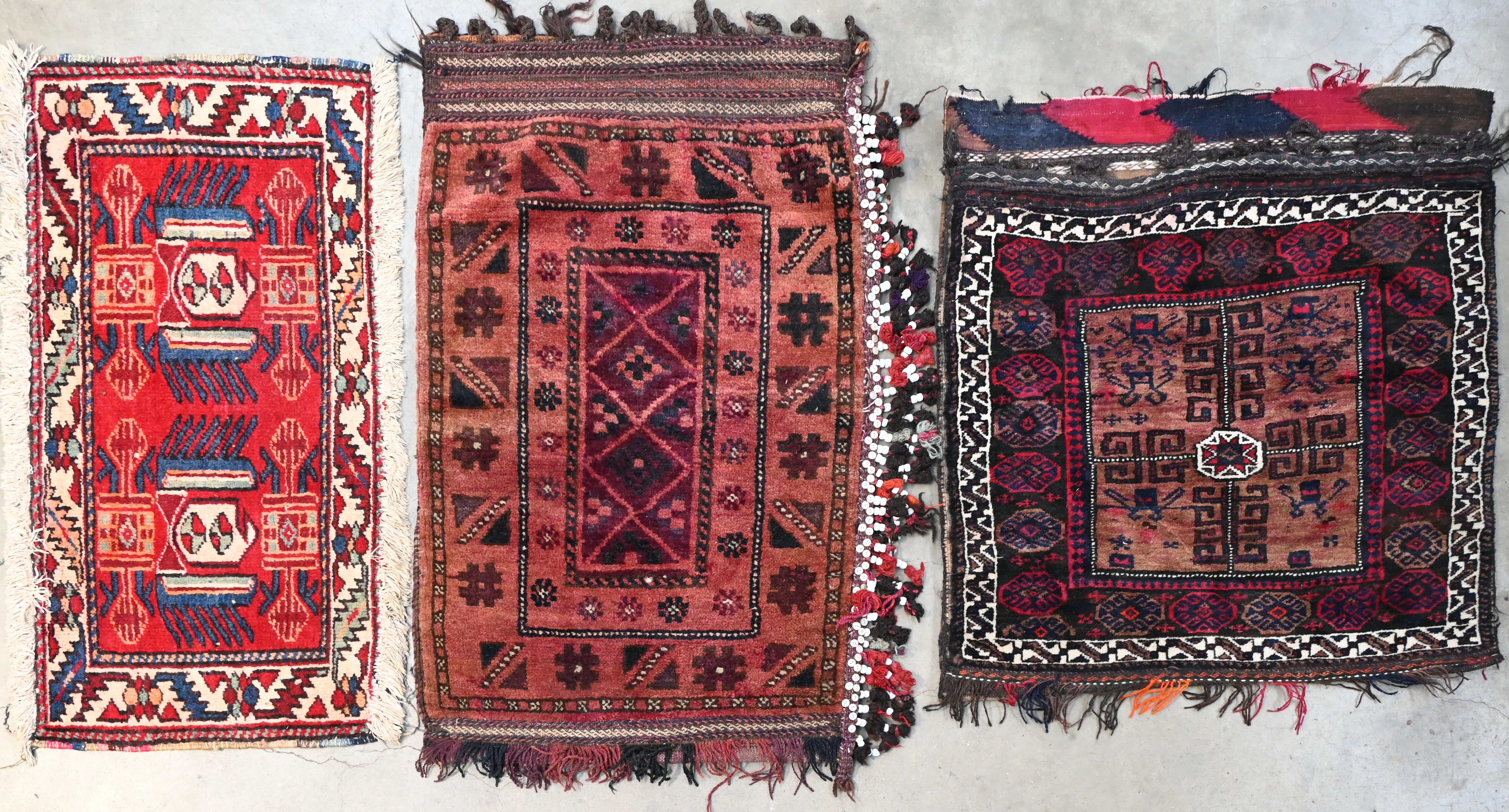 Een lot van drie handgeknoopte Oosterse tapijtjes.
