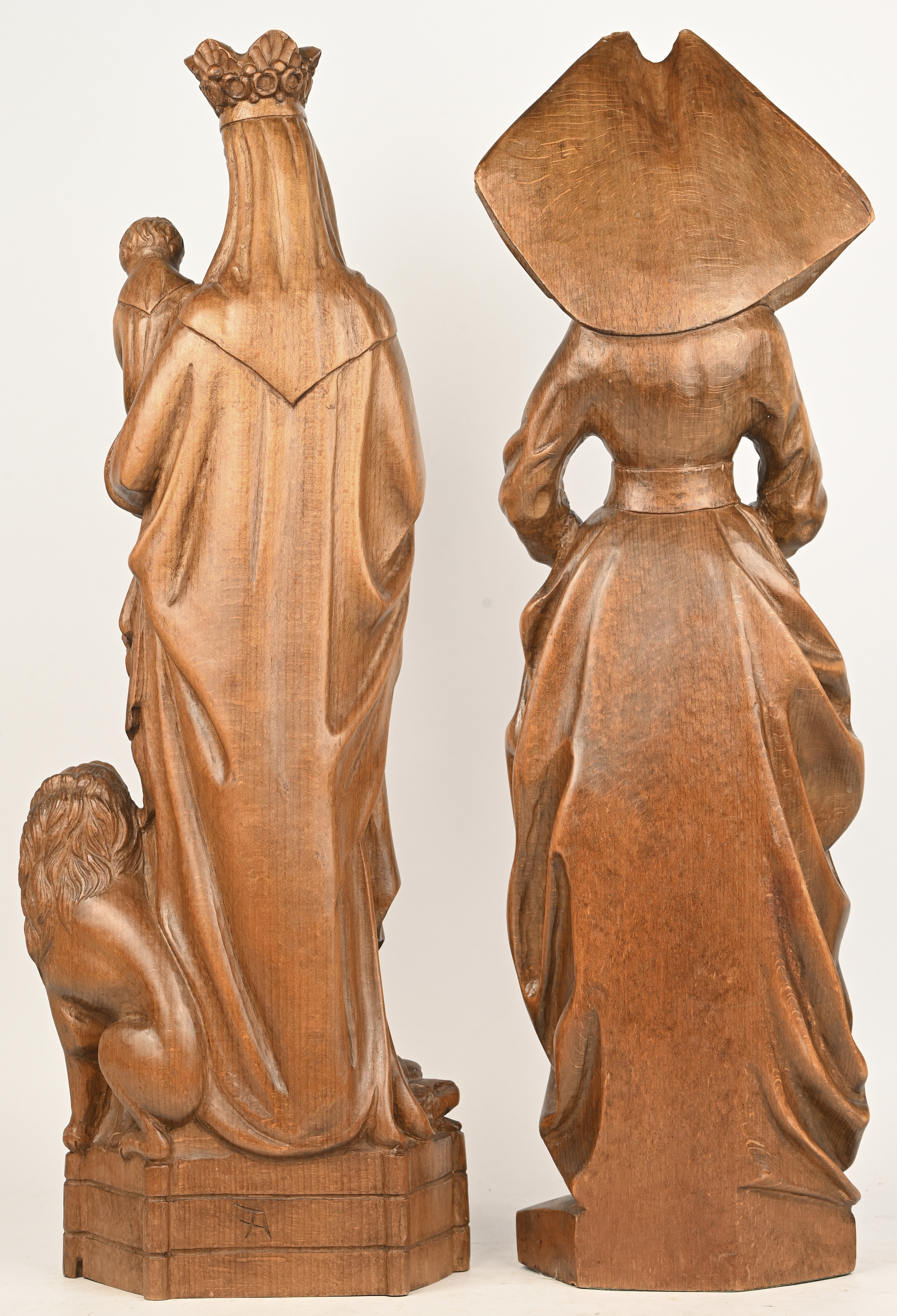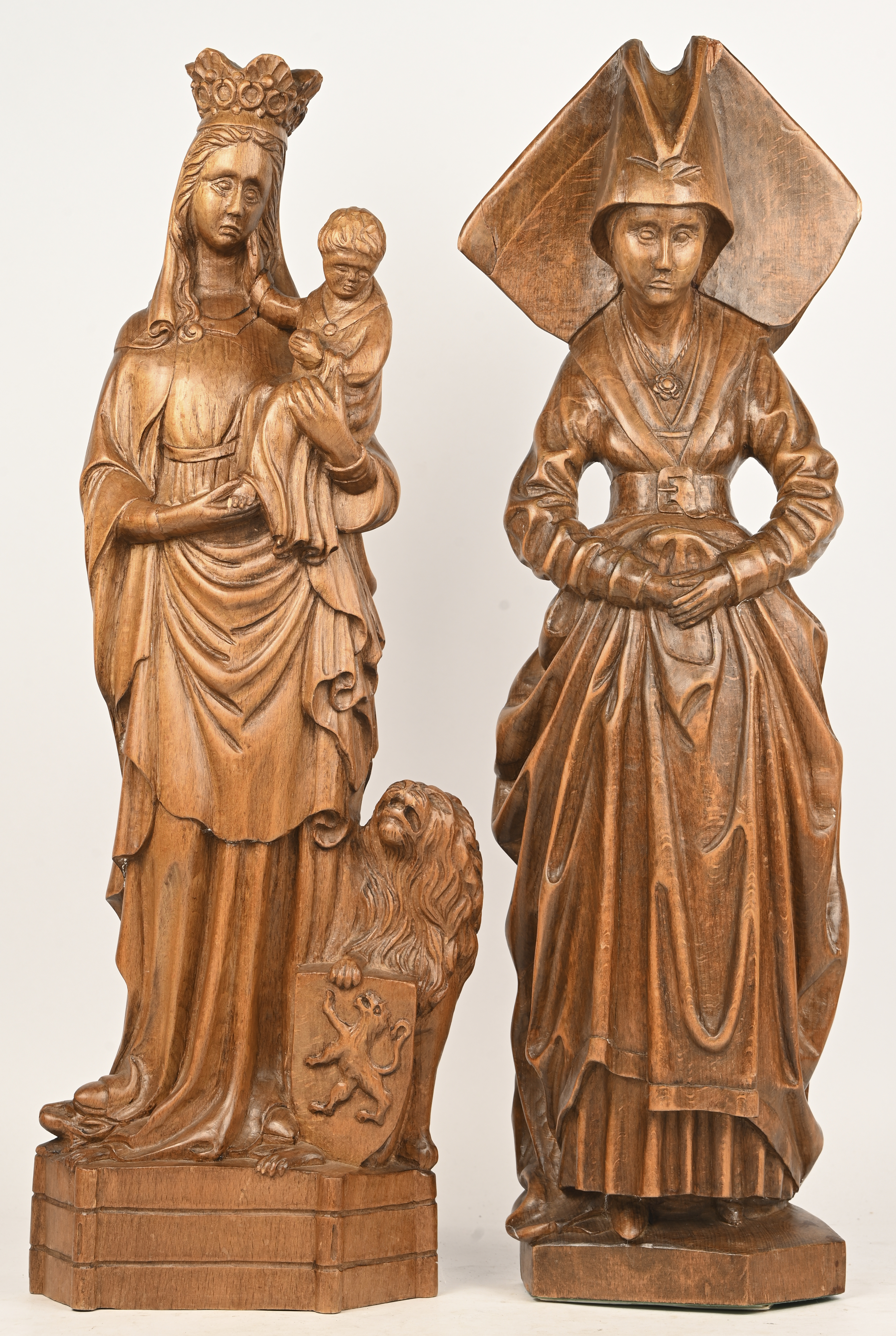 #516Een set van 2 hoge Chinese bijzettafeltjes, gesculpteerd hout met elk 4 draken in het decor.