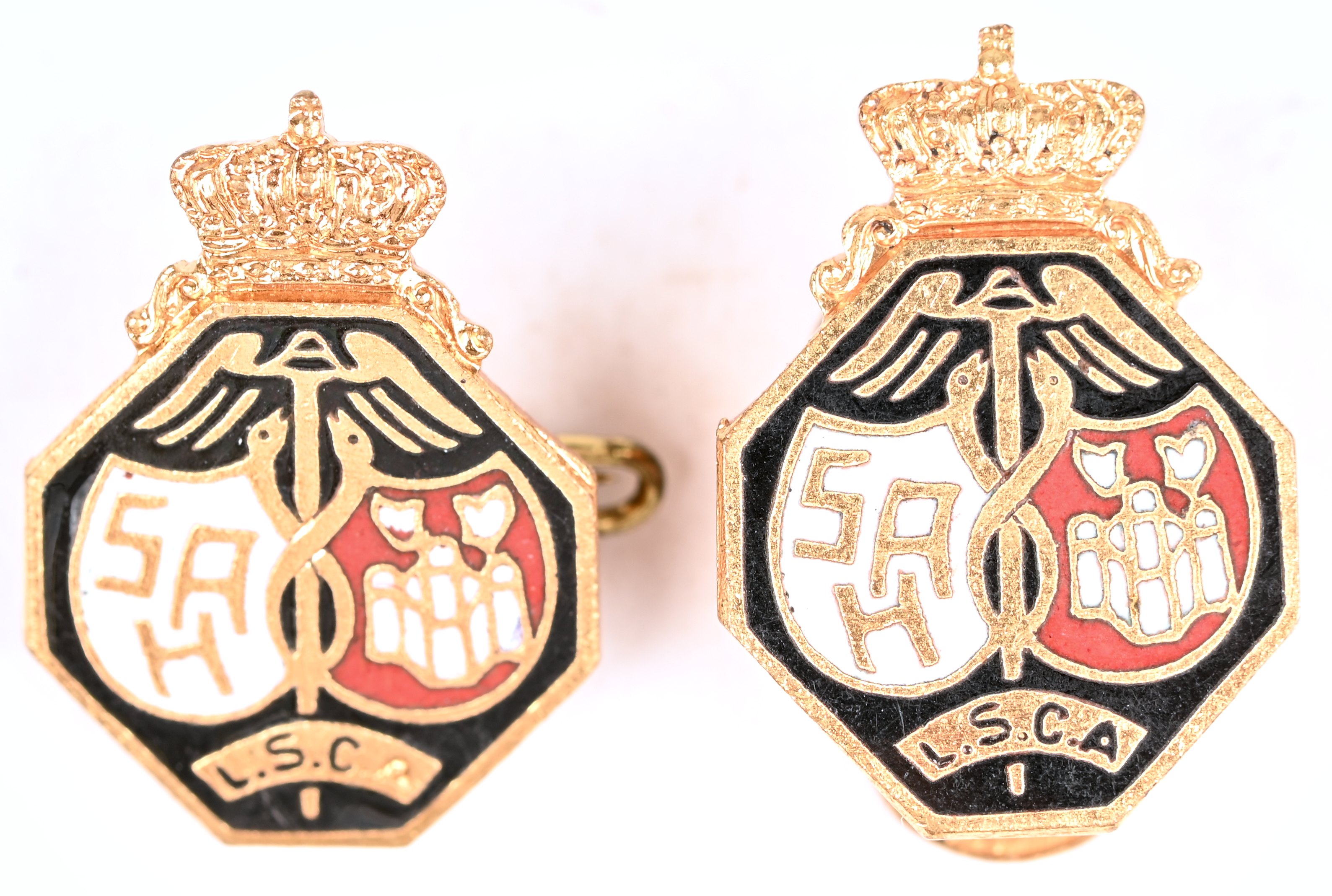 A lot of two pins 'Sports Association Antwerp' 'L.S.C.A.'