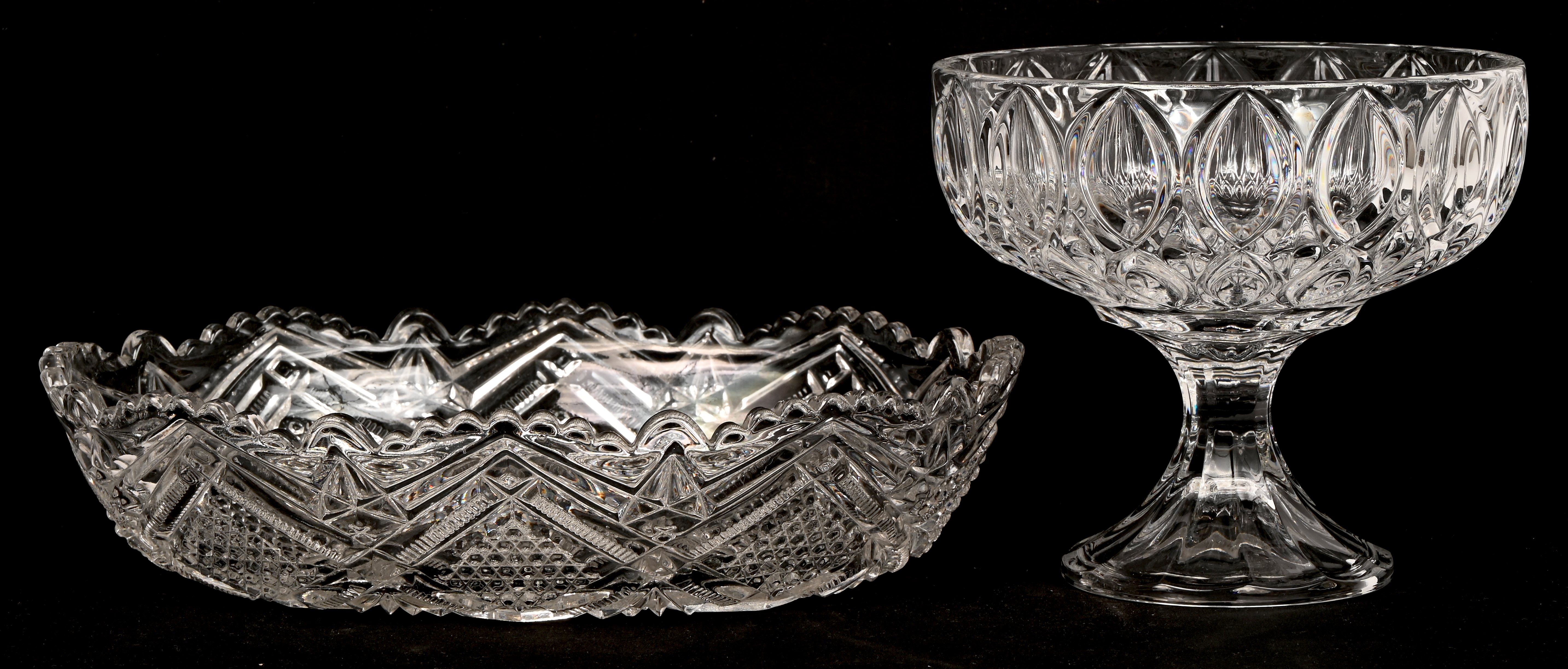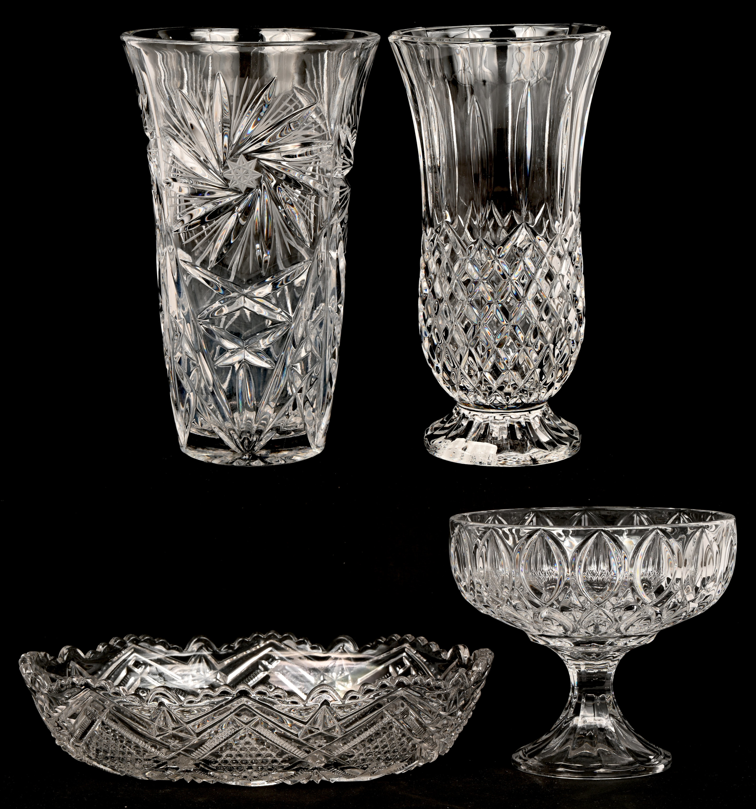 A lot of three pieces of cut Bohemian crystal. Consisting of a heart-shaped dish, a large plate, and a vase. -