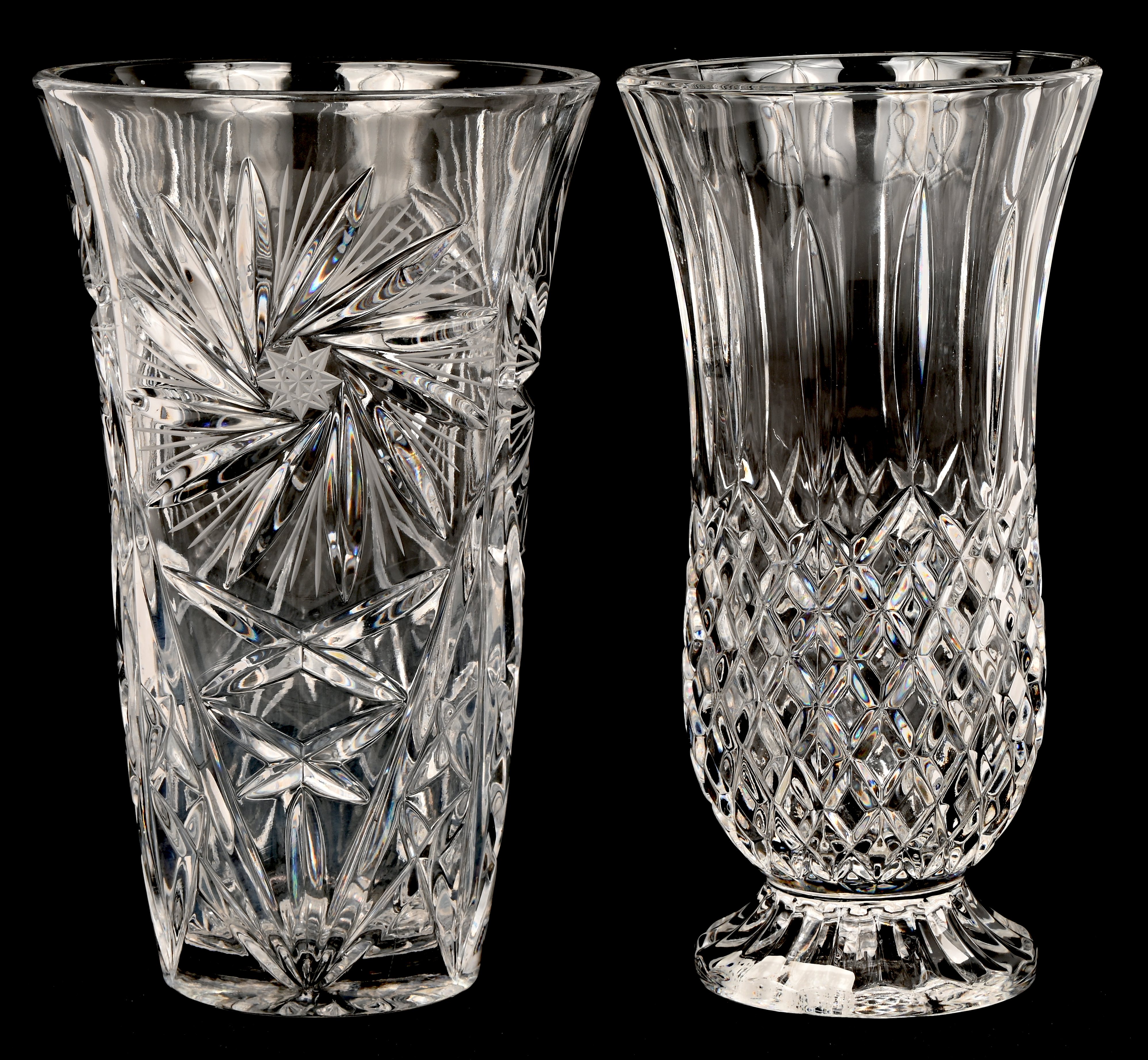 A pair of glass goblet-shaped vases.