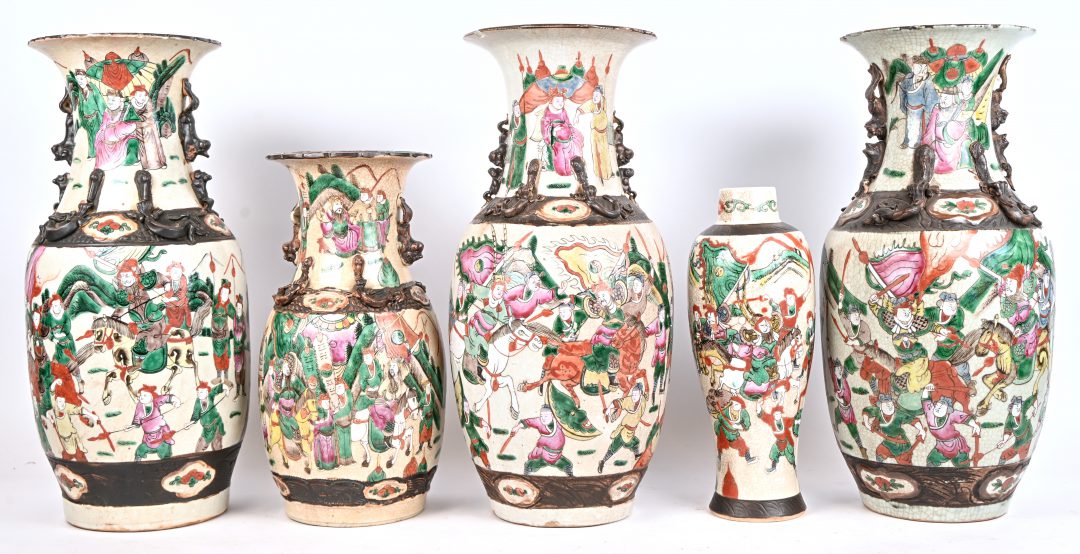 #21Een set beschilderde vazen uit hyalietglas, vermoedelijk Doyen, eerste helft 20ste eeuw.