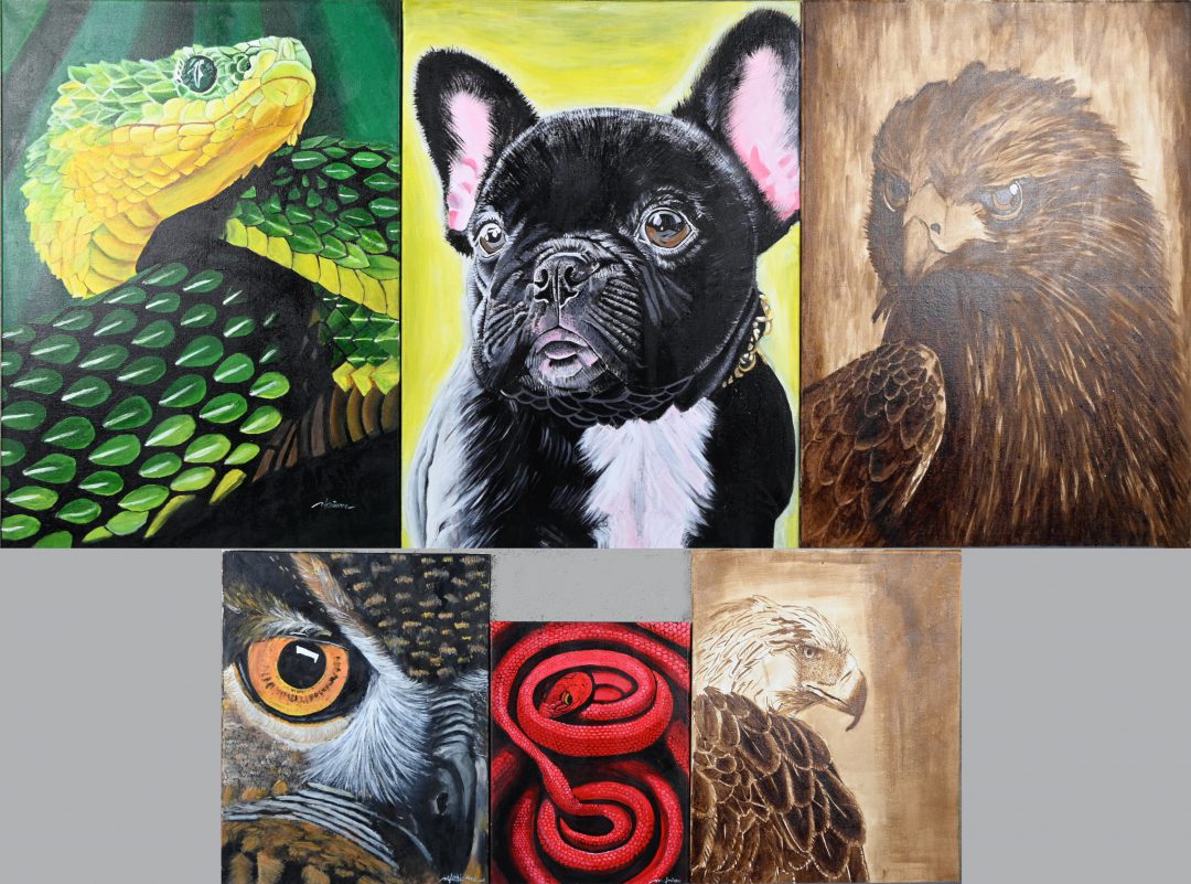 A lot of three paintings with perfume as the theme, acrylic on canvas, signed by Mhara M. Tesiorna. Various sizes ranging from 90/60 to 150/90 cm. With certificate.No longer availableDim. 150/90 cmEstimate: € 80 / 120 -