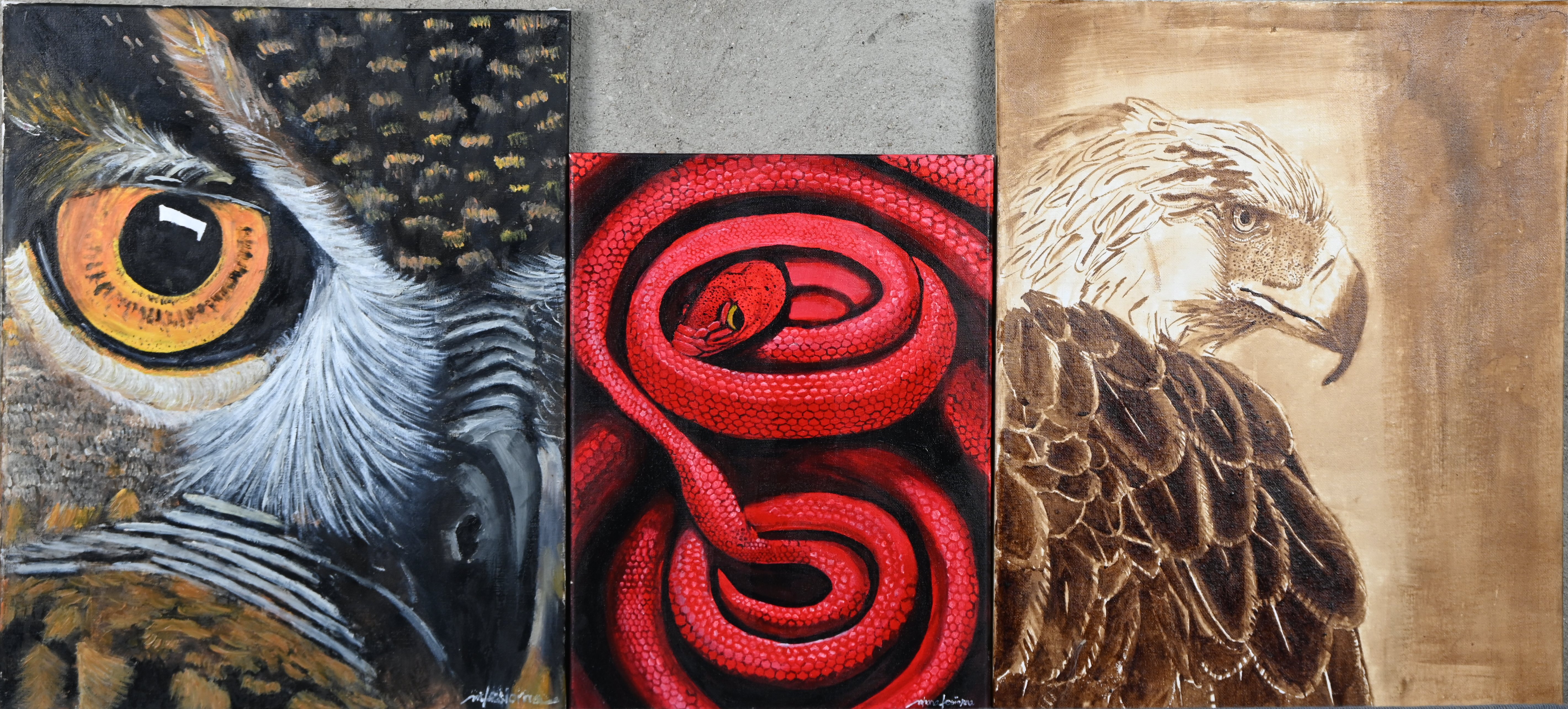 A lot of three paintings with a culinary theme, acrylic on canvas, signed; Mhara M. Tesiorna. With certificate.No longer availableDim. 91/61 cmEstimate: € 60 / 80