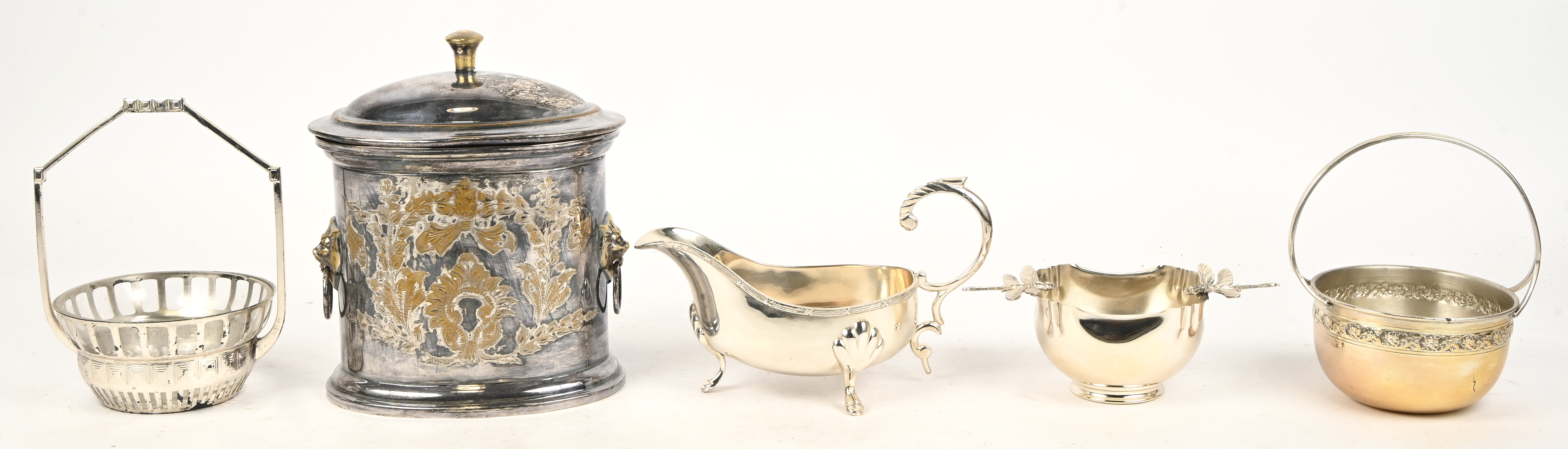 Een lot tinnen voorwerpen met een gezamelijk gewicht van 5 kg.