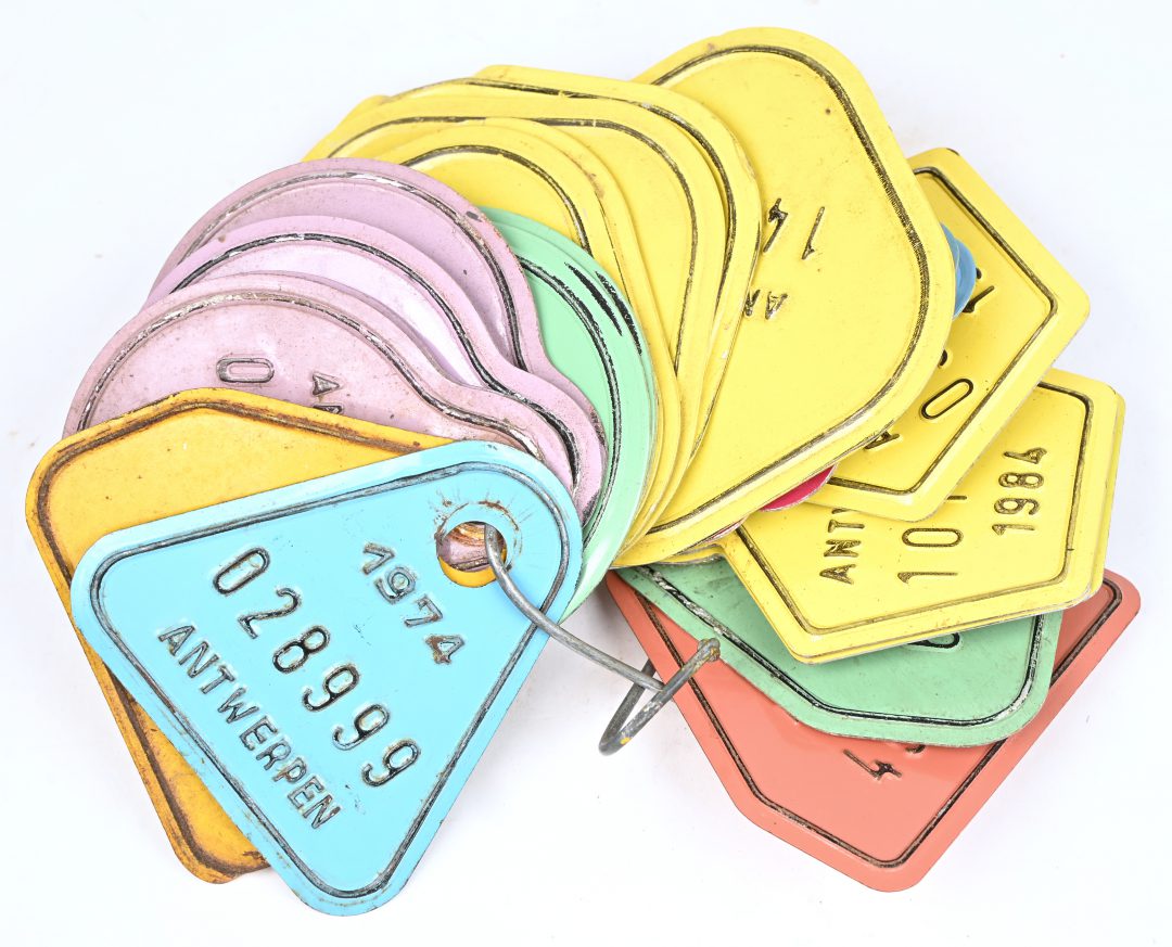 #104Zes bronzen en metalen herdenkingsplaquettes: Cavalcade de Jemappes, paques 1953, Ministerie van landbouw, 1962, union pour le developpement de l’instruction proffesionelle des apprentiset jeunes ouvriers, 1905, Match Bruxelles-ostende 8-5-1938, in commemoration of the opening of the new dock Newport, 1958 en een tafeltennismedaille, 1959.
