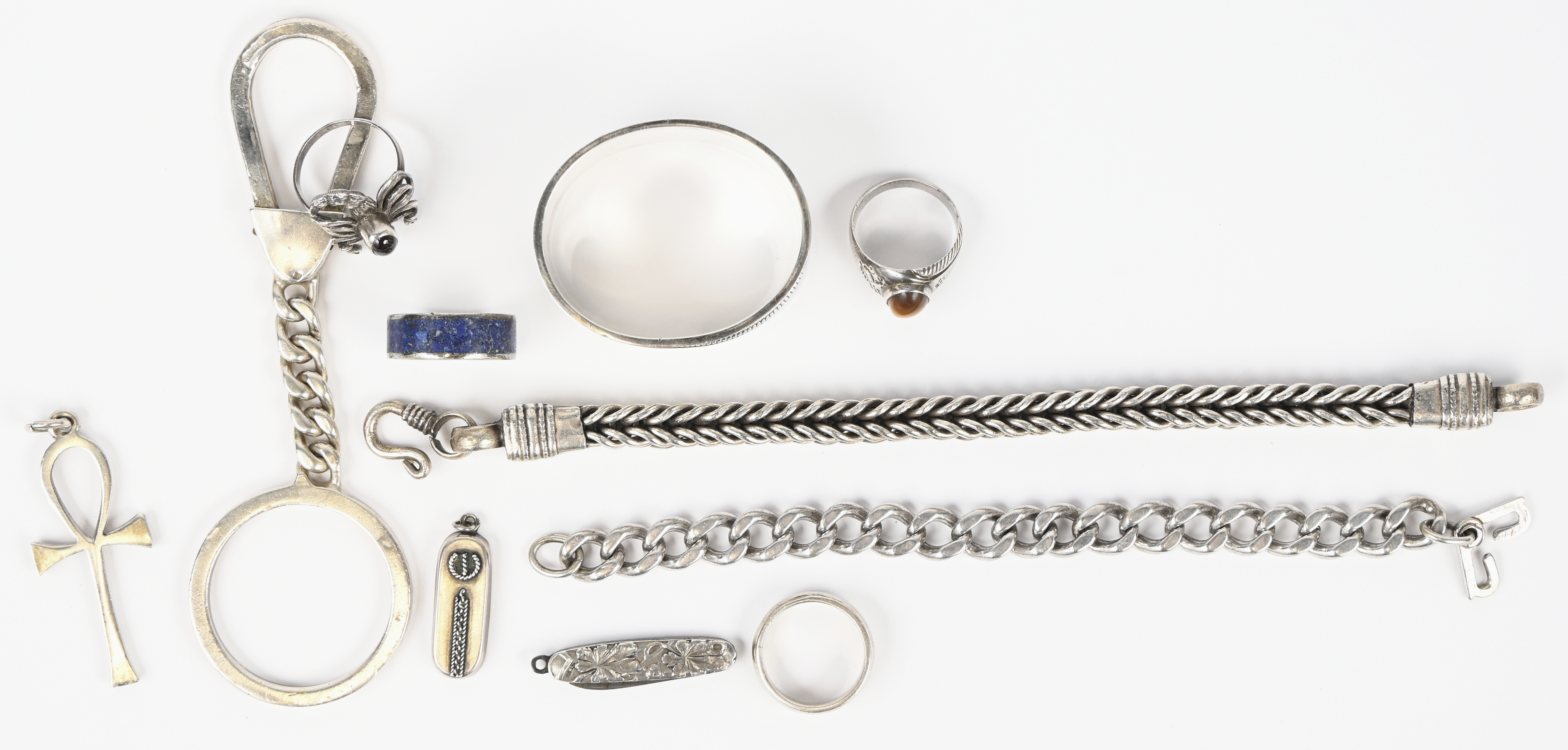 Vijf verschillende zilveren ringen bezet met fantasiestenen. 925‰.