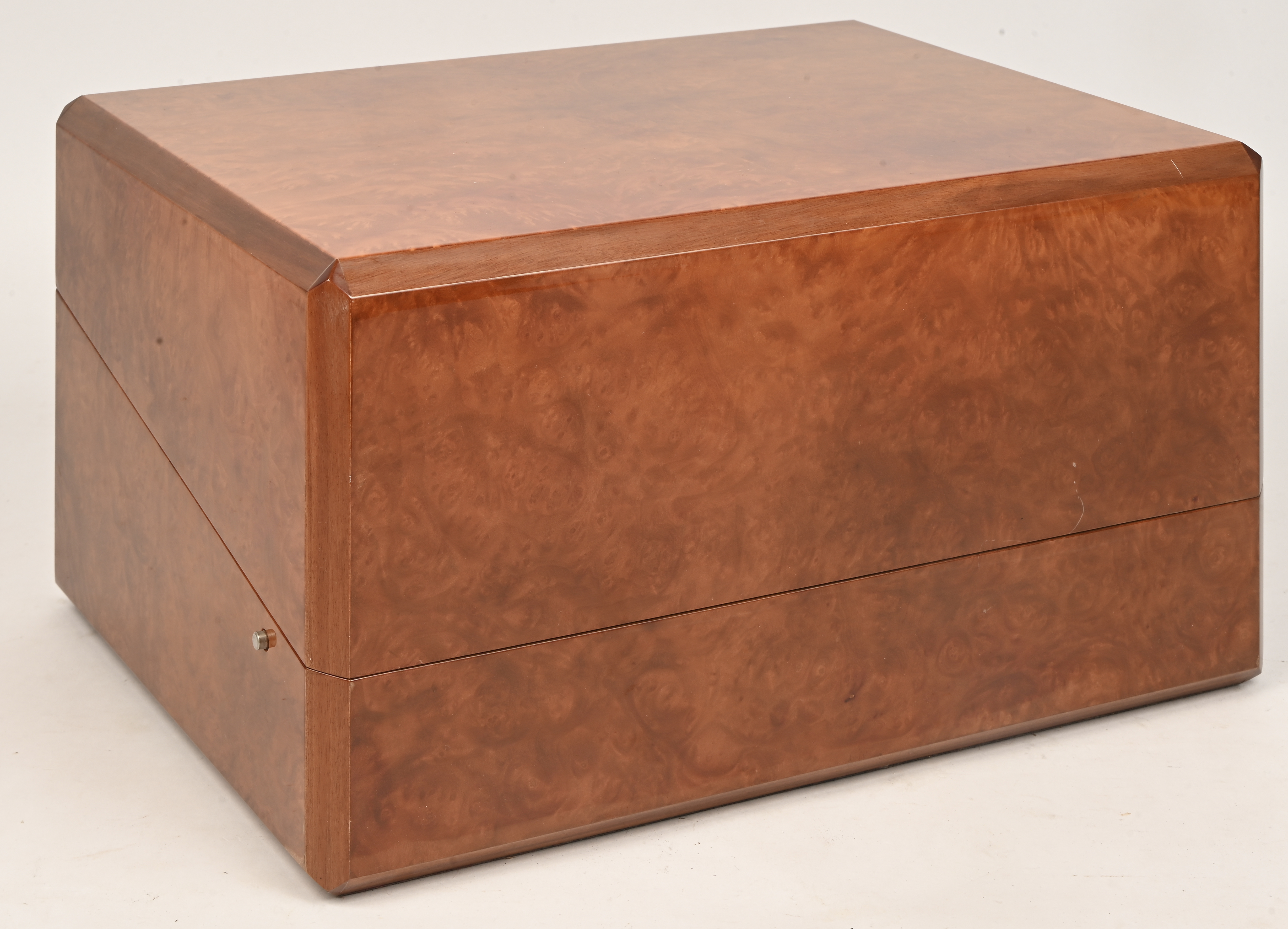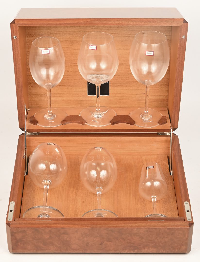 Een ovale doos van gegoten glas, in het deksel voorstelling van een bloemenvaas. Onderaan gemerkt.
